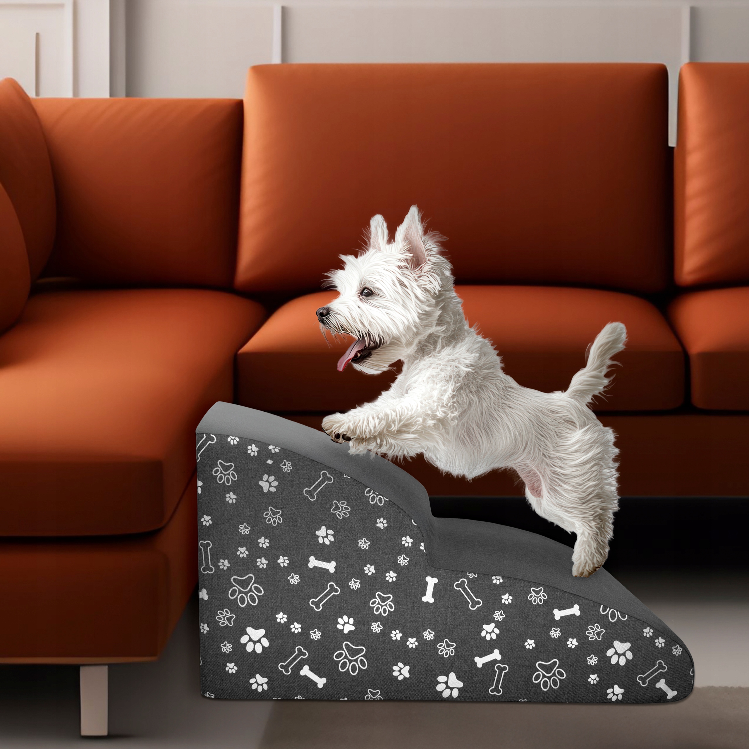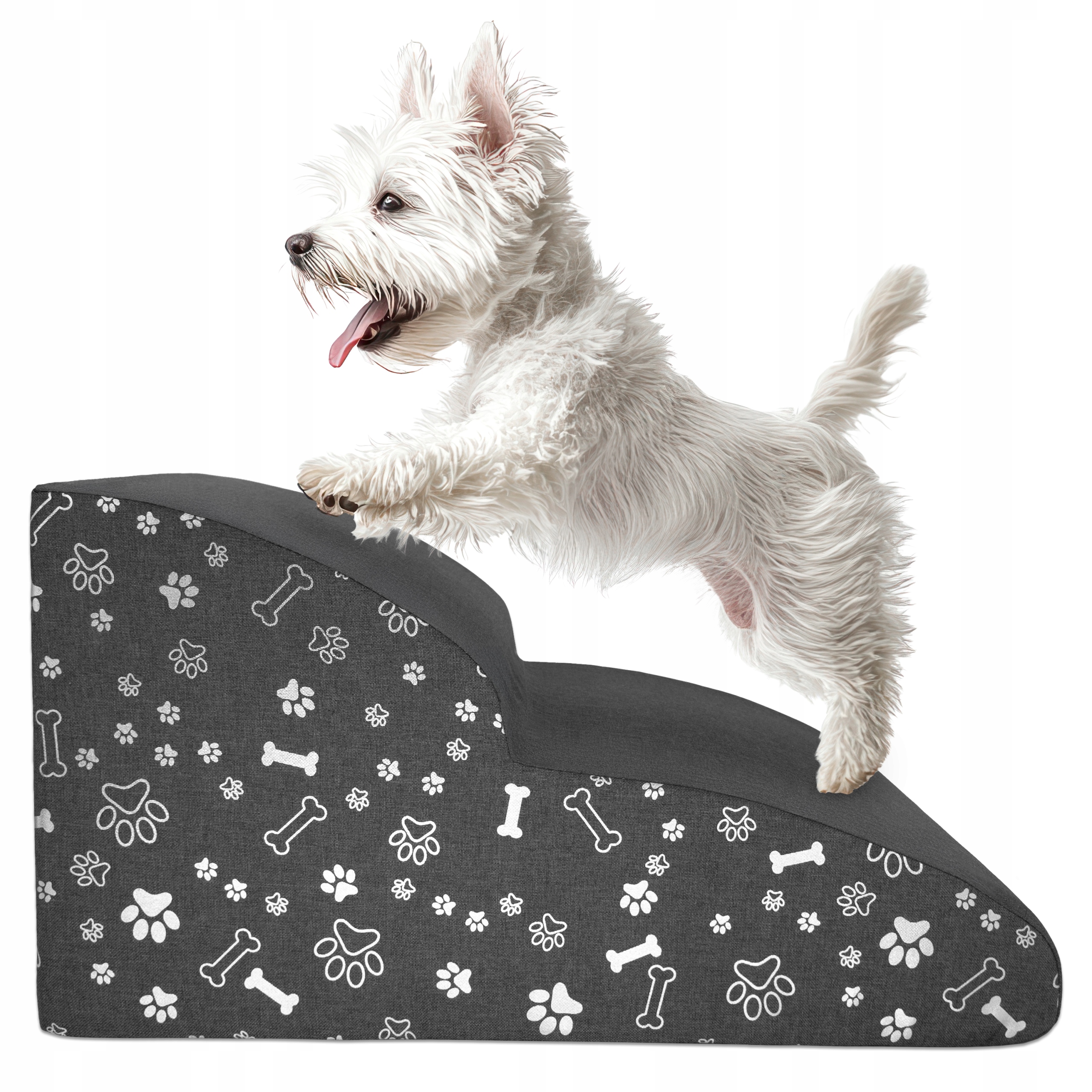 4. Ułatwienie dla małych ras: Małe psy, szczególnie te o krótkich nóżkach, często mają trudności z pokonywaniem większych wysokości. Schodki DogGuru są dostosowane do ich potrzeb, zapewniając łatwy i bezpieczny dostęp do ulubionych miejsc.