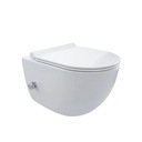 Bezrantowa miska wisząca WC z funkcją bidetu, z wolno opadającą deską WC.