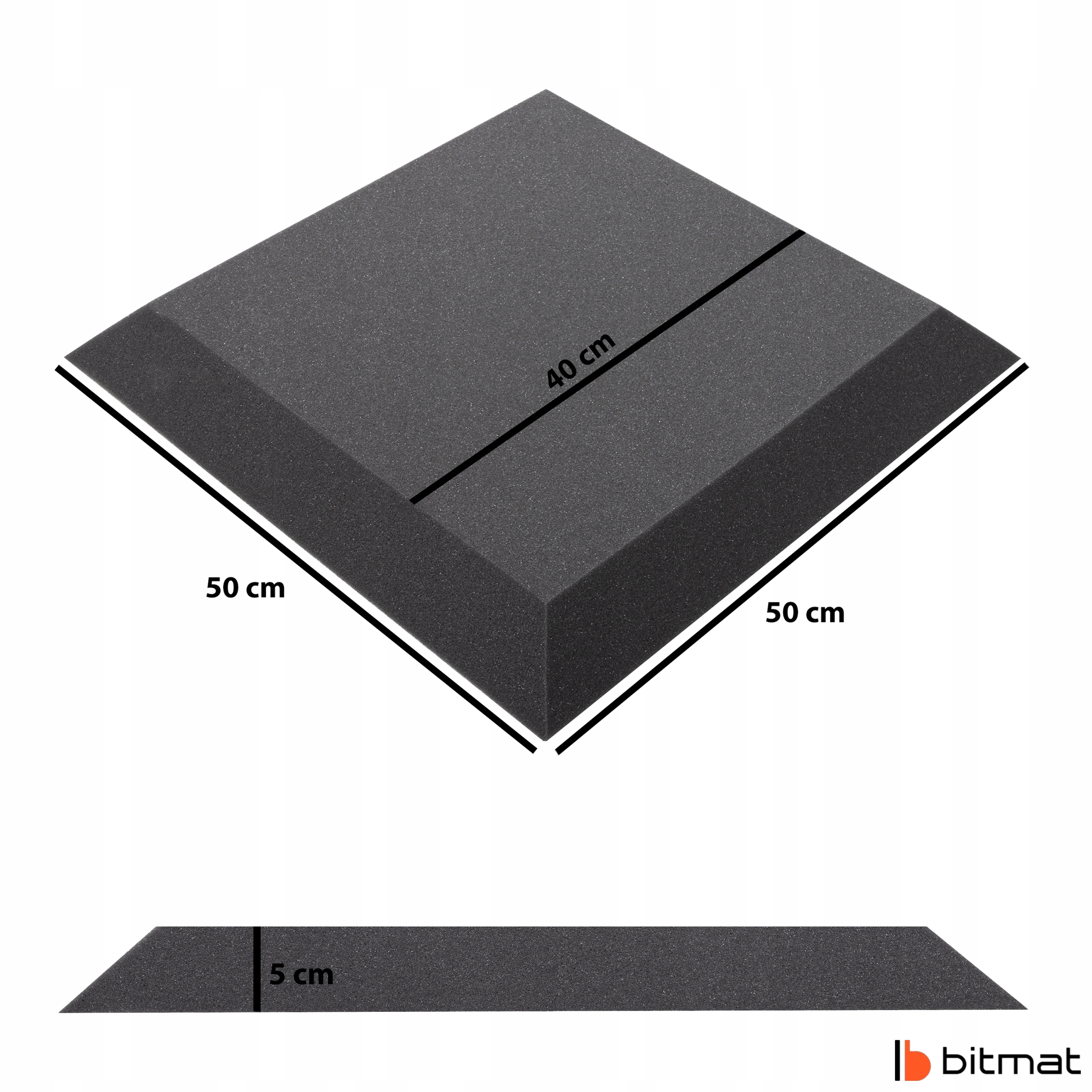 Panel akustyczny w kształcie trapezu 50 cm x 50 cm marki Bitmat to skuteczne rozwiązanie do wygłuszania wnętrz mieszkalnych, biurowych, sal prób i studiów nagraniowych. Dzięki otwartokomórkowej strukturze pianka pochłania i rozprasza fale dźwiękowe, eliminując echo oraz redukując czas pogłosu. Dodatkowo nowoczesny design paneli sprawia, że stanowią one estetyczny element aranżacji wnętrza.