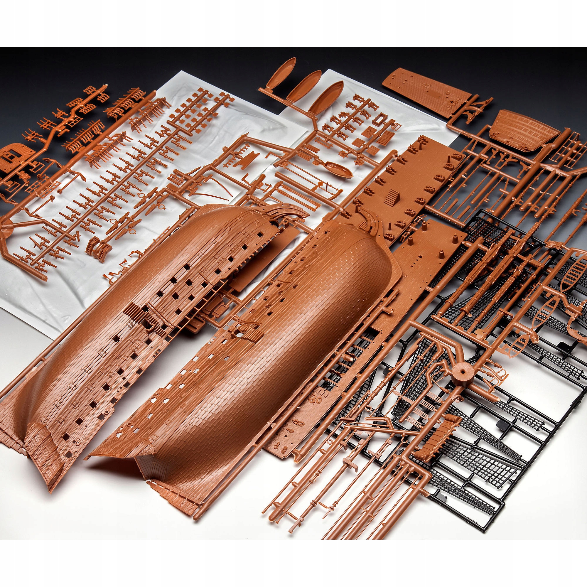 Plastikowy model do sklejania REVELL. Victory to flagowy okręt wojenny admirała Nelsona podczas słynnej Bitwy pod Trafalgarem w 1805 roku. Admirał Nelson dzięki swojej flocie odniósł imponujące zwycięstwo nad flotą Napoleońską, lecz sam odniósł śmiertelne obrażenia. Cechy zestawu: - Wyjątkowo szczegółowe burty kadłuba - Strukturalny pokład - Artyleria - Mnóstwo detali - Dekoracyjnie zdobiony dziób - Szczegółowe maszty z koszem wierzchołkowym - Wanty - W zestawie znajduje się linka do olinowania - Karta z flagami - W zestawie plakat Victory o wymiarach 60 x 42 cm! Zestaw upominkowy z akcesoriami modelarskimi ( 6 podstawowych farbek, pędzelek, klej ).