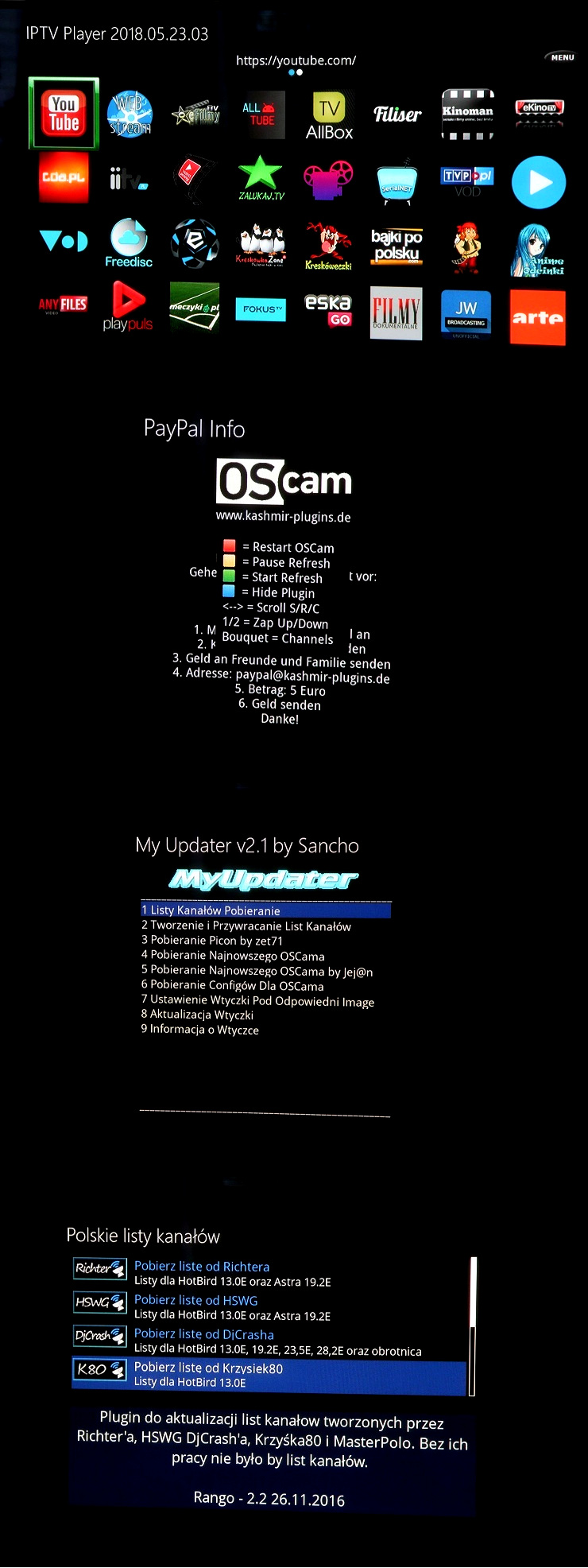 Программное обеспечение имеет загруженный плагин s4aUpdater это позволяет загружать списки каналов, picon, последние oscam и конфигурации oscam в правильной работы карт или домашнего обмена.