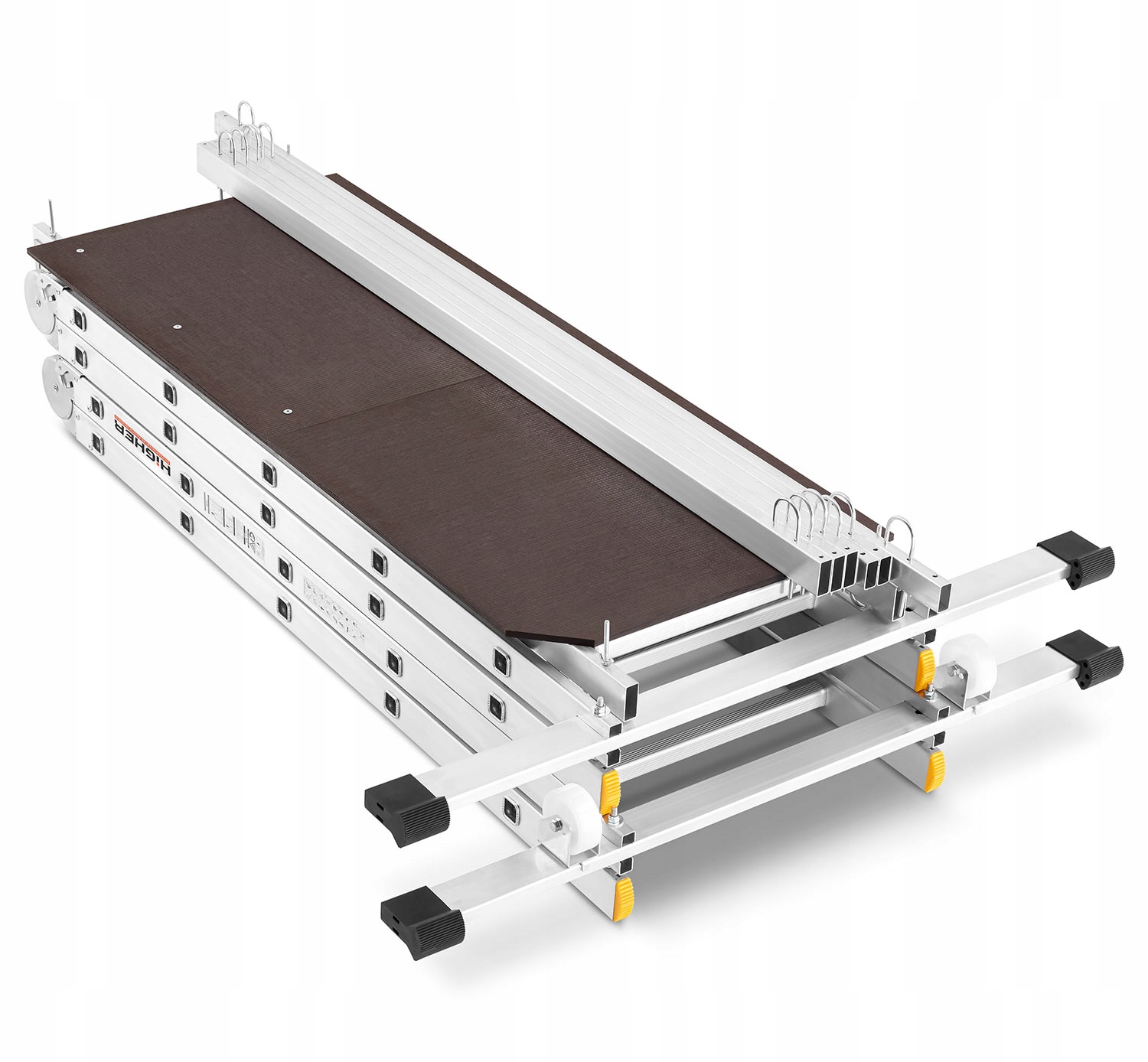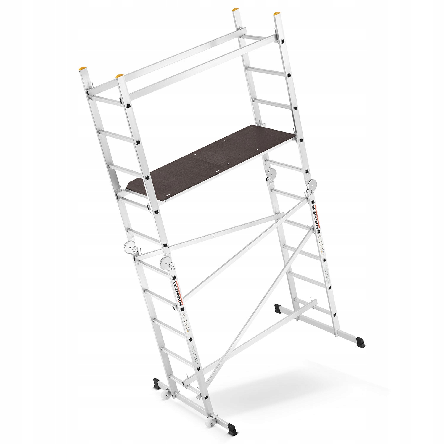 Lekka, ale solidna aluminiowa konstrukcja gwarantuje stabilność i trwałość, a zintegrowane kółka pozwalają na szybkie i łatwe przemieszczanie rusztowania bez zbędnego wysiłku. Montaż jest intuicyjny i szybki, a po zakończeniu pracy całość składa się do kompaktowych rozmiarów, dzięki czemu nie zajmuje dużo miejsca w przechowywaniu.