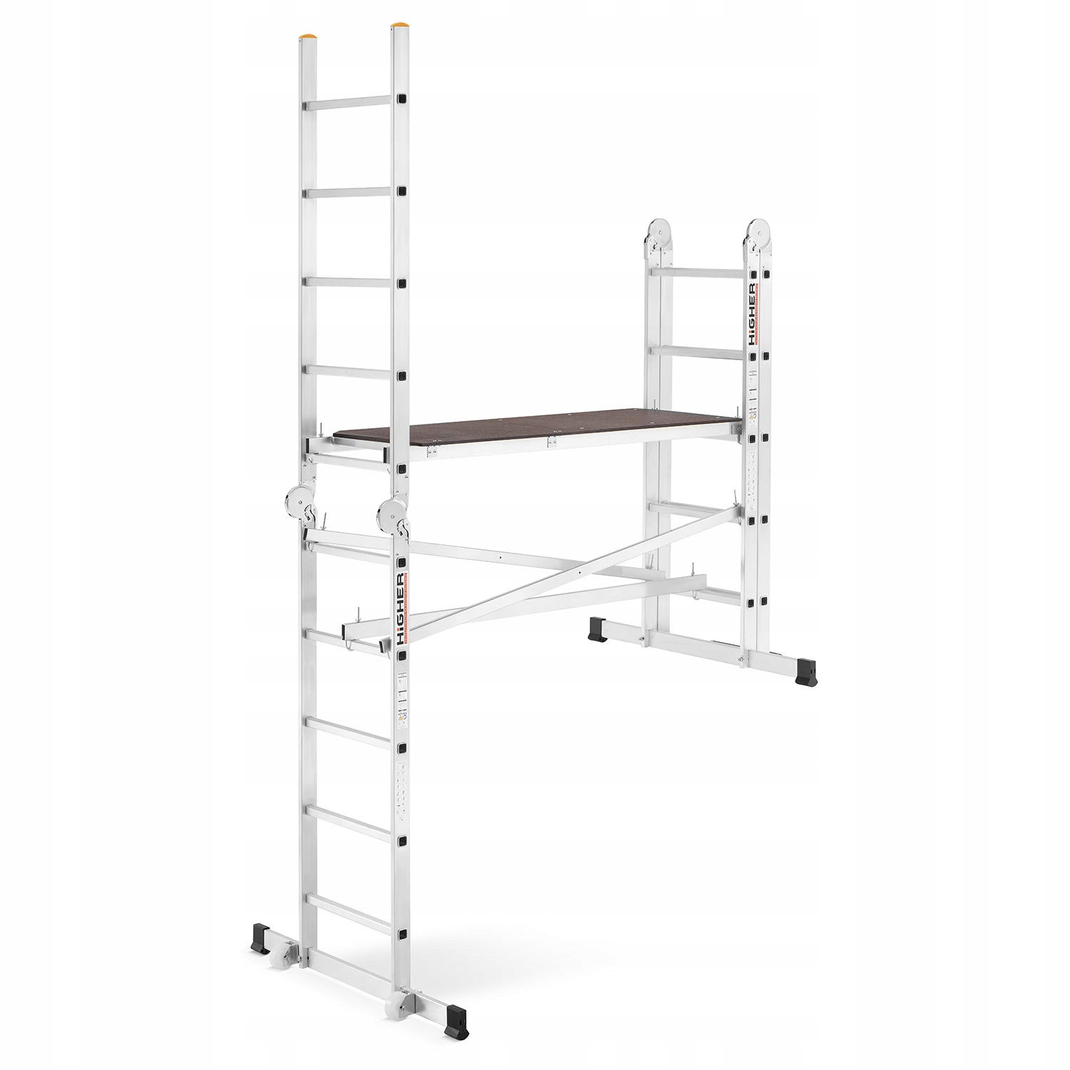 ✅ Przegubowa konstrukcja – to właśnie dzięki przegubom rusztowanie jest tak wszechstronne. Przeguby umożliwiają użytkowanie produktu jako rusztowania, drabiny przystawnej, drabiny wolnostojącej i podestu roboczego.