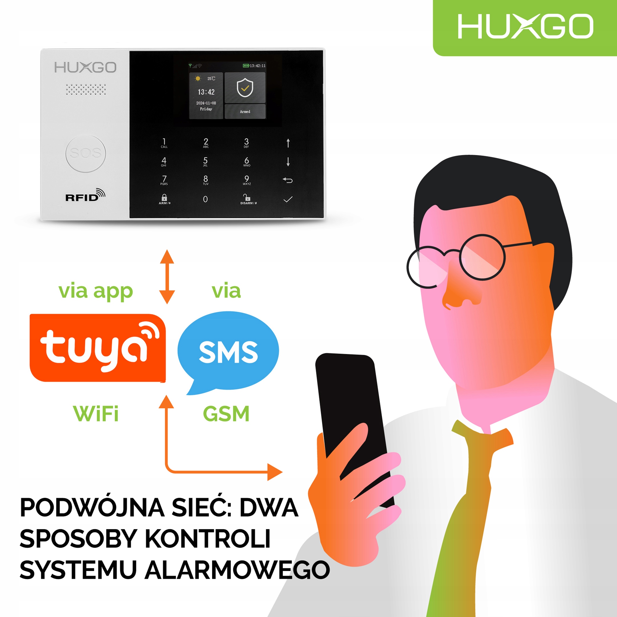 Centrala alarmowa z klawiaturą dotykową oraz menu w języku polskim. Kompatybilna z aplikacją TUYA SMART, umożliwiającą stworzenie tzw. Smart Home.