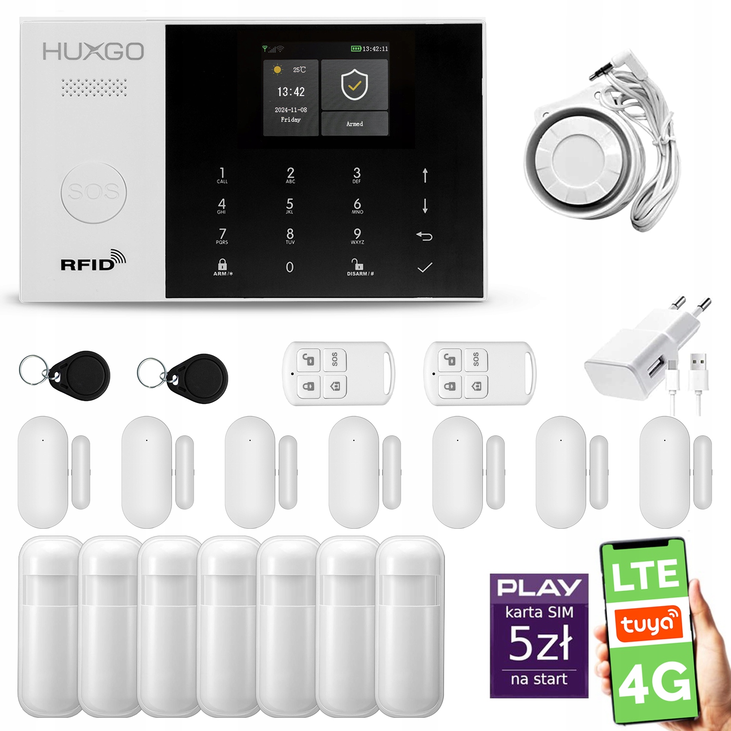System alarmowy HUXGO HXA005 4G LTE możesz rozbudować o dodatkowe elementy, które pozwolą Ci odpowiednio zabezpieczyć Twój dom przed włamaniem, zalaniem, pożarem i wyciekiem gazu. Na naszych pozostałych aukcjach znajdziesz: czujnik zalania, kontaktrony - czujniki magnetyczne na drzwi i okna, czujniki ruchu PIR, czujniki dymu i temperatury (pożarowe), piloty, breloki RFID, syreny bezprzewodowe oraz czujniki ruchu odporne na zwierzęta.