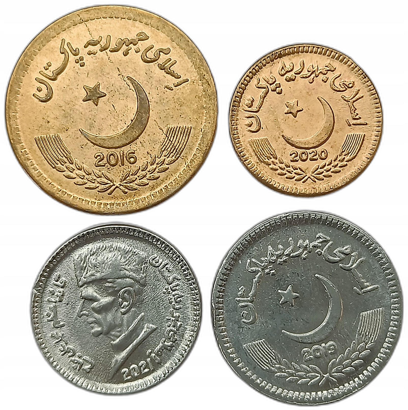 PAKISTAN ZESTAW 4 MONET 1 - 10 RUPEE RUPII 2016 - 2021 ŚWIĄTYNIE MENNICZE