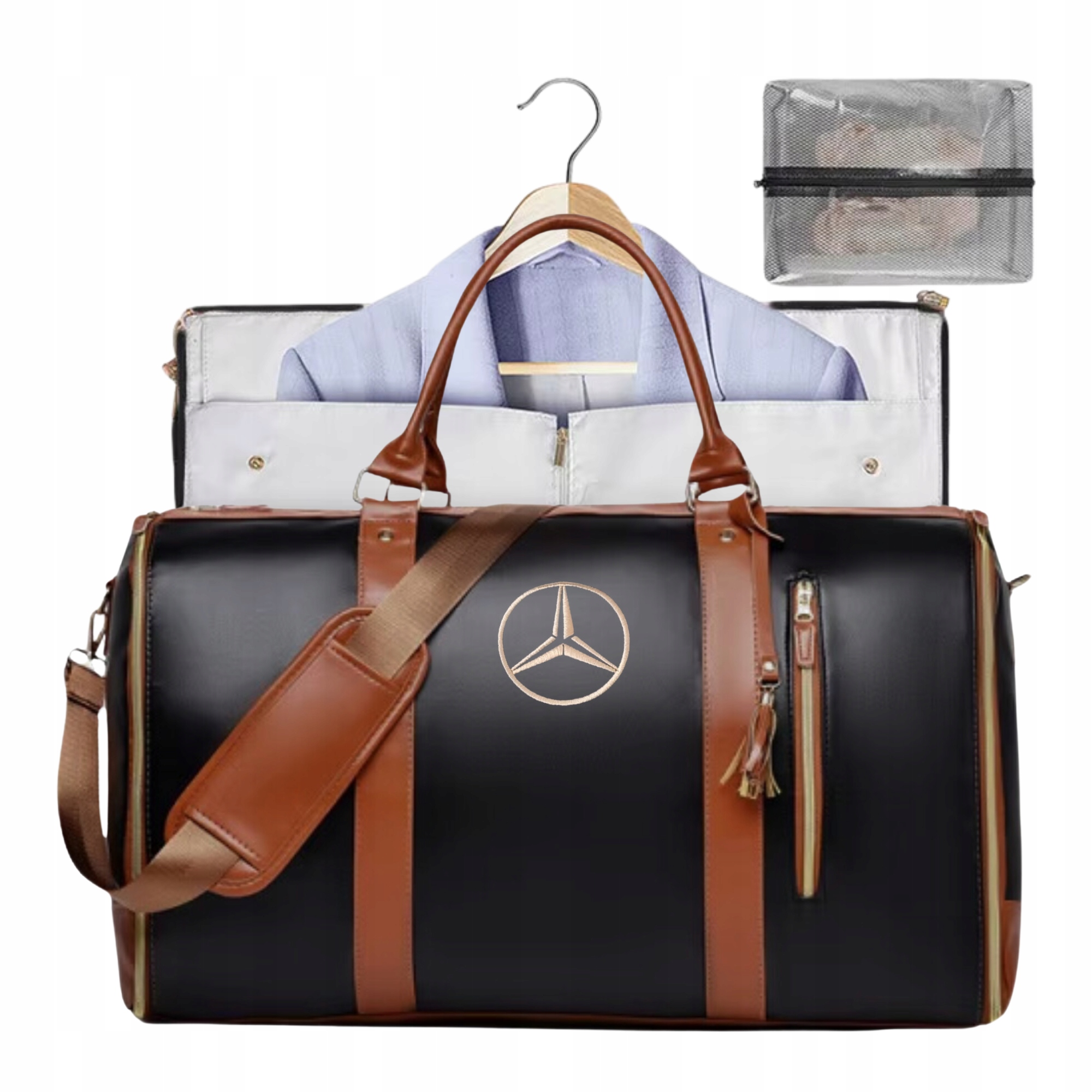 To innowacyjne rozwiązanie dla osób, które często podróżują i cenią sobie porządek. Dzięki unikalnej konstrukcji, można w niej łatwo przechowywać i transportować zarówno eleganckie ubrania, jak i codzienne akcesoria. Główna komora torby jest na tyle przestronna, że pomieści złożone ubrania, obuwie, kosmetyki oraz inne niezbędne przedmioty. Dodatkowo, specjalne miejsce na powieszenie sukienek lub garniturów zapewnia, że podczas podróży ubrania zachowają odpowiedni kształt . To idealne rozwiązanie dla tych, którzy chcą oszczędzić czas i uniknąć stresu związanego z pakowaniem, mając jednocześnie pewność, że wszystkie ich rzeczy są dobrze zorganizowane i zabezpieczone.