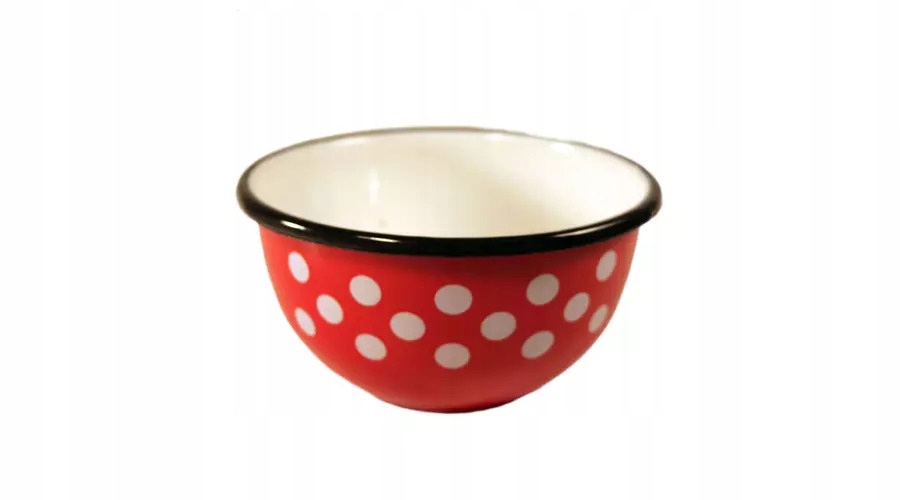 Poręczna miseczka wykonana ze stali emaliowanej.