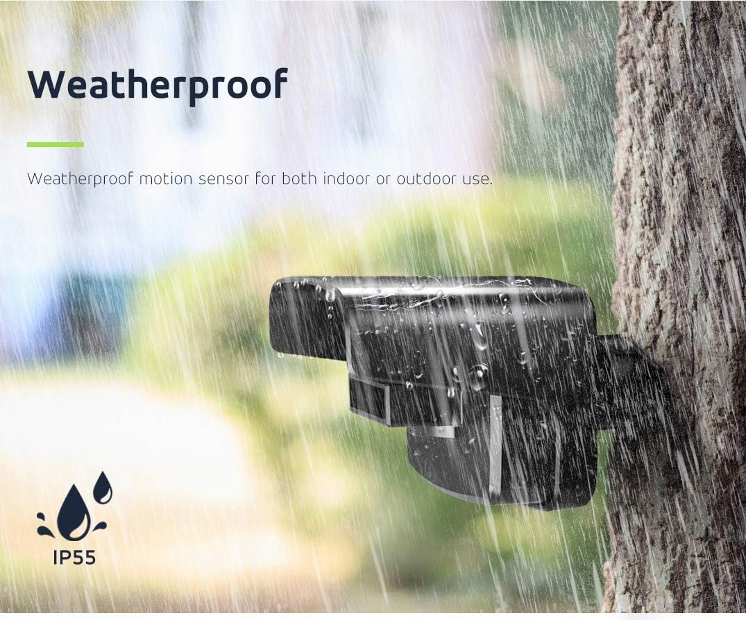 ➡️ Wodoszczelny Czujnik Ruchu PIR: Nasz czujnik ruchu PIR jest wysoce precyzyjny, ma niską częstotliwość fałszywych alarmów i jest wodoodporny oraz odporny na warunki atmosferyczne dzięki konstrukcji IP55, co sprawia, że działa idealnie na zewnątrz i wewnątrz.