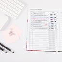 Każdy segment w książce został przemyślany i umieszczony tak, aby zapisywanie informacji było intuicyjne, a następnie odnajdywanie ich było szybkie i łatwe.