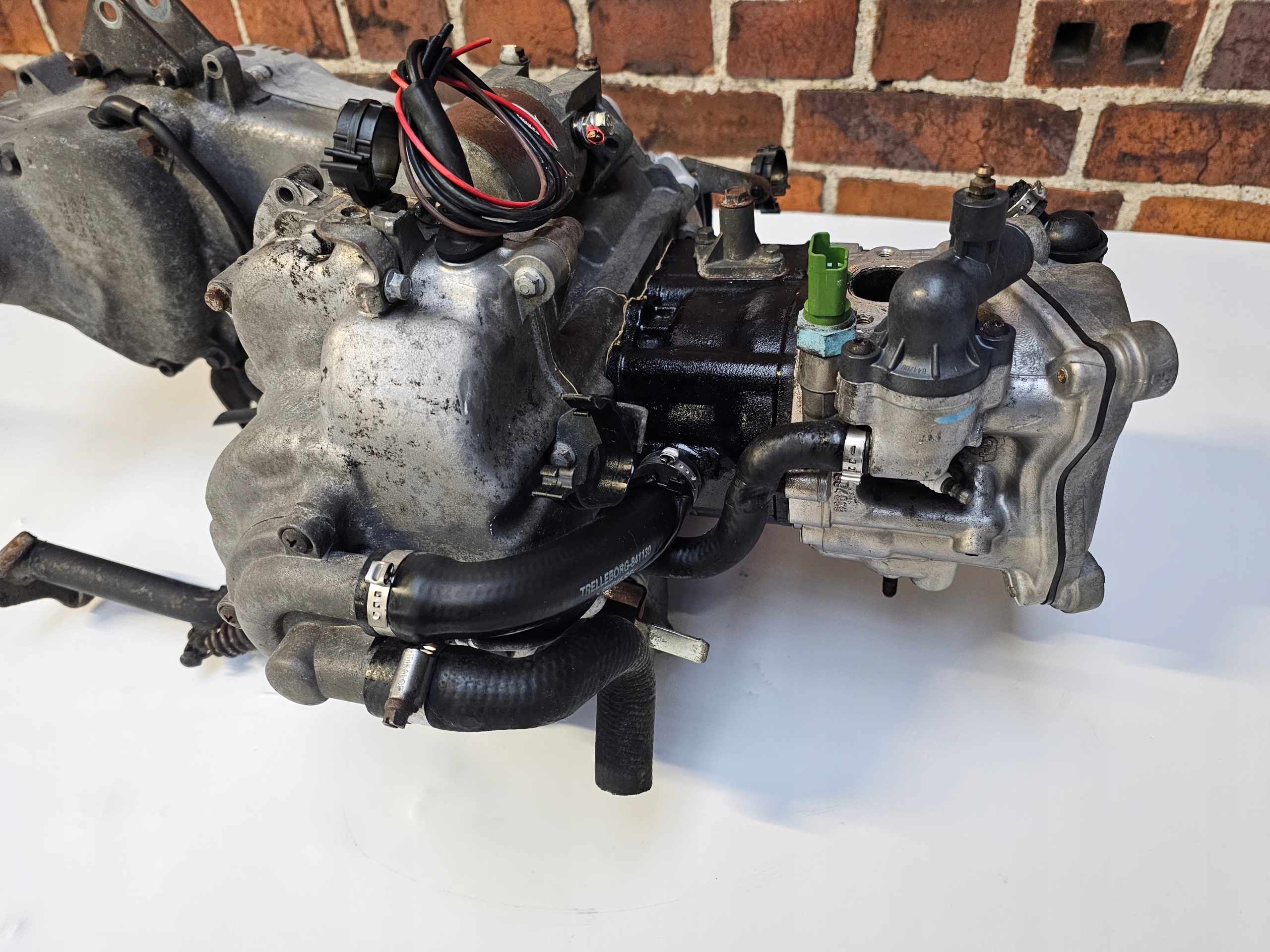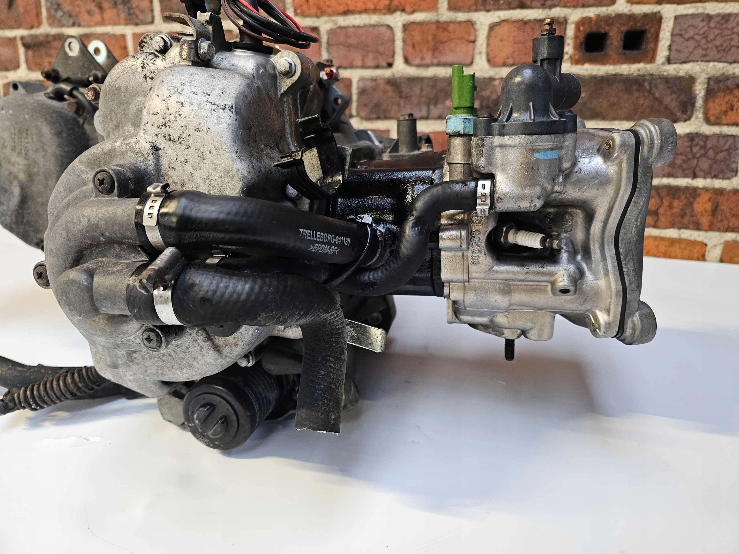 Kompletny silnik jak na zdjęciach z osprzetem,sprawny,pracuje prawidłowo i cicho,stan dobry,obcięte kostki od statora.