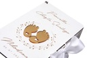 Na zewnątrz pudełka znajduję się personalizacja z imieniem dziecka oraz datą chrztu