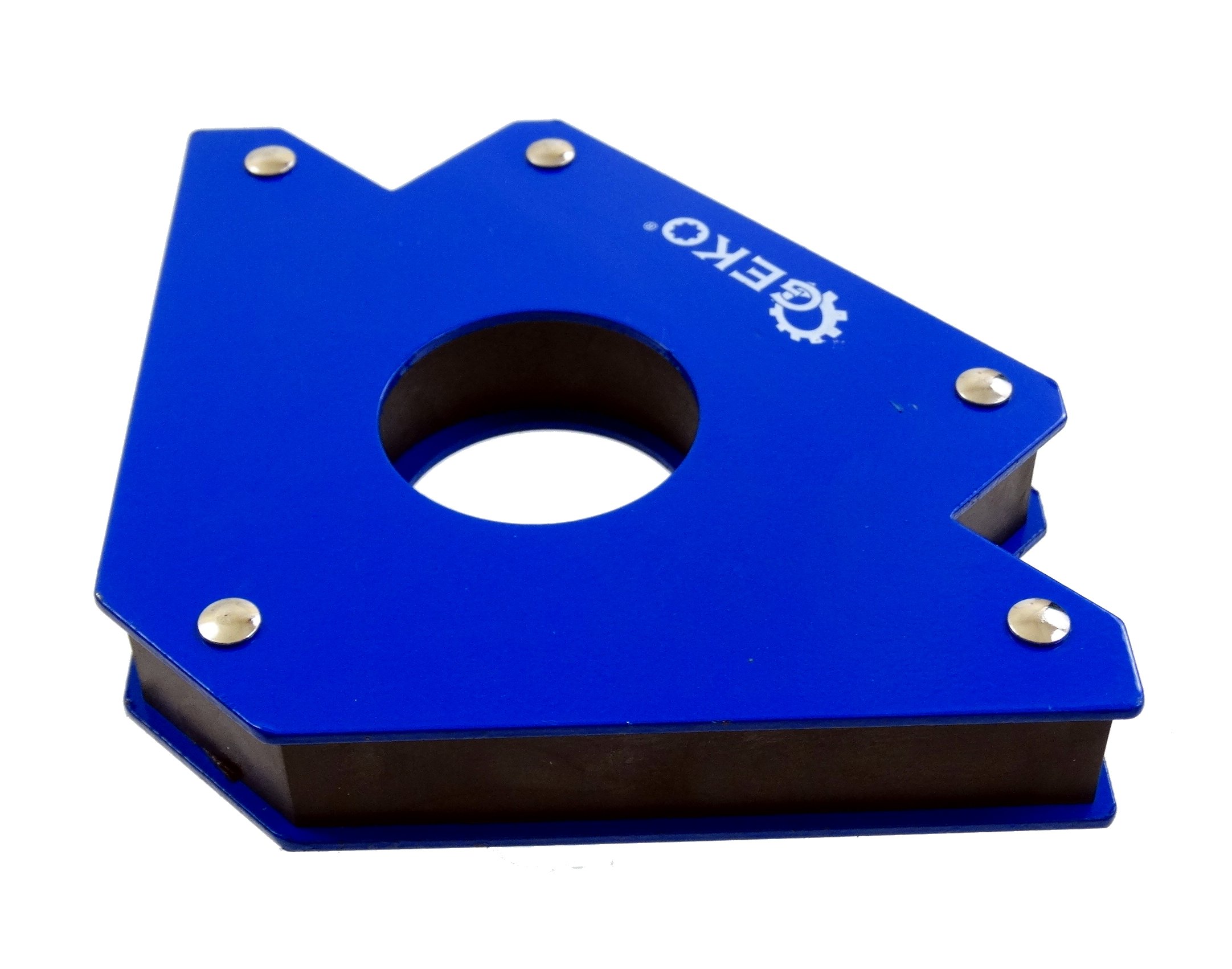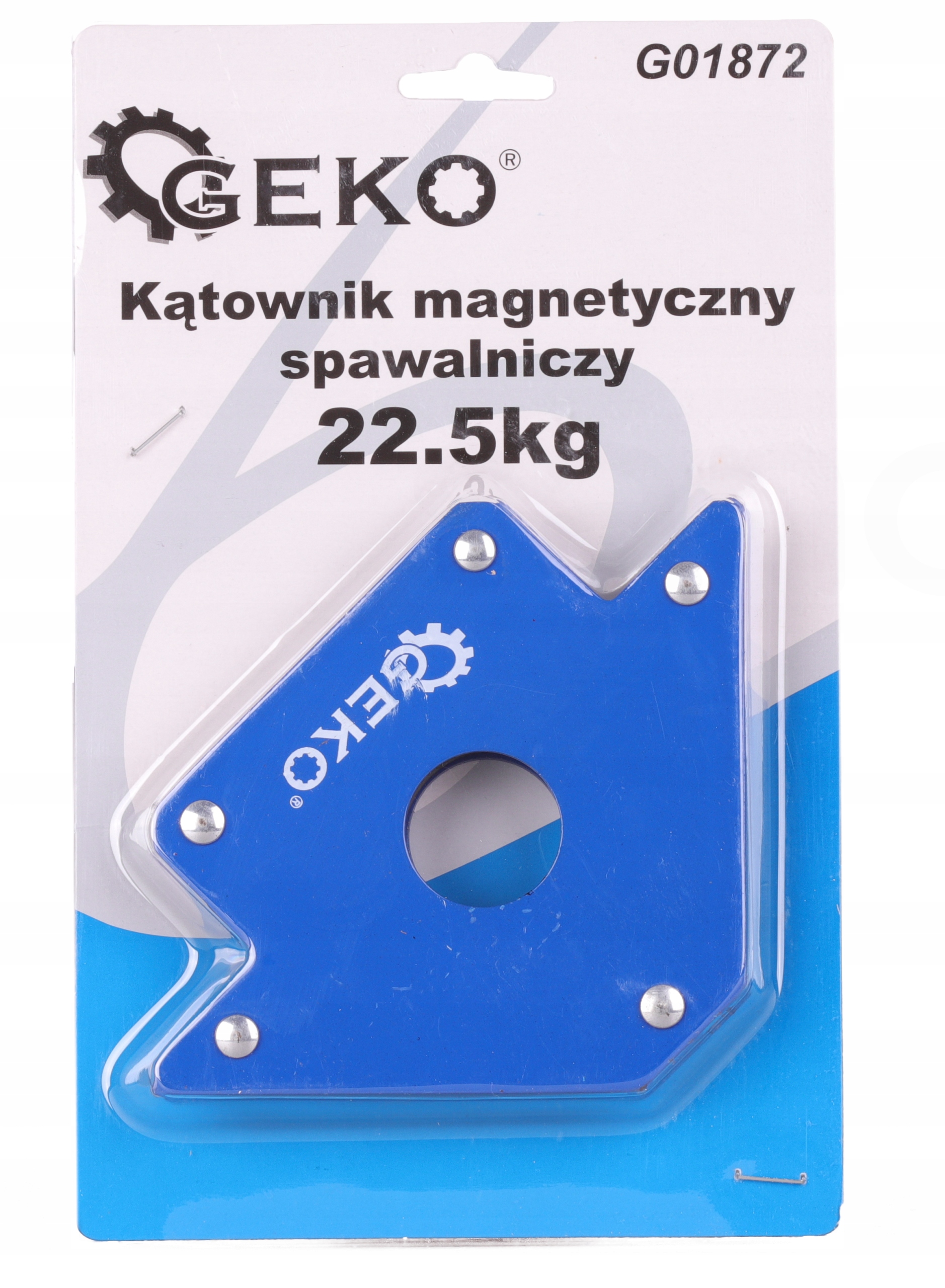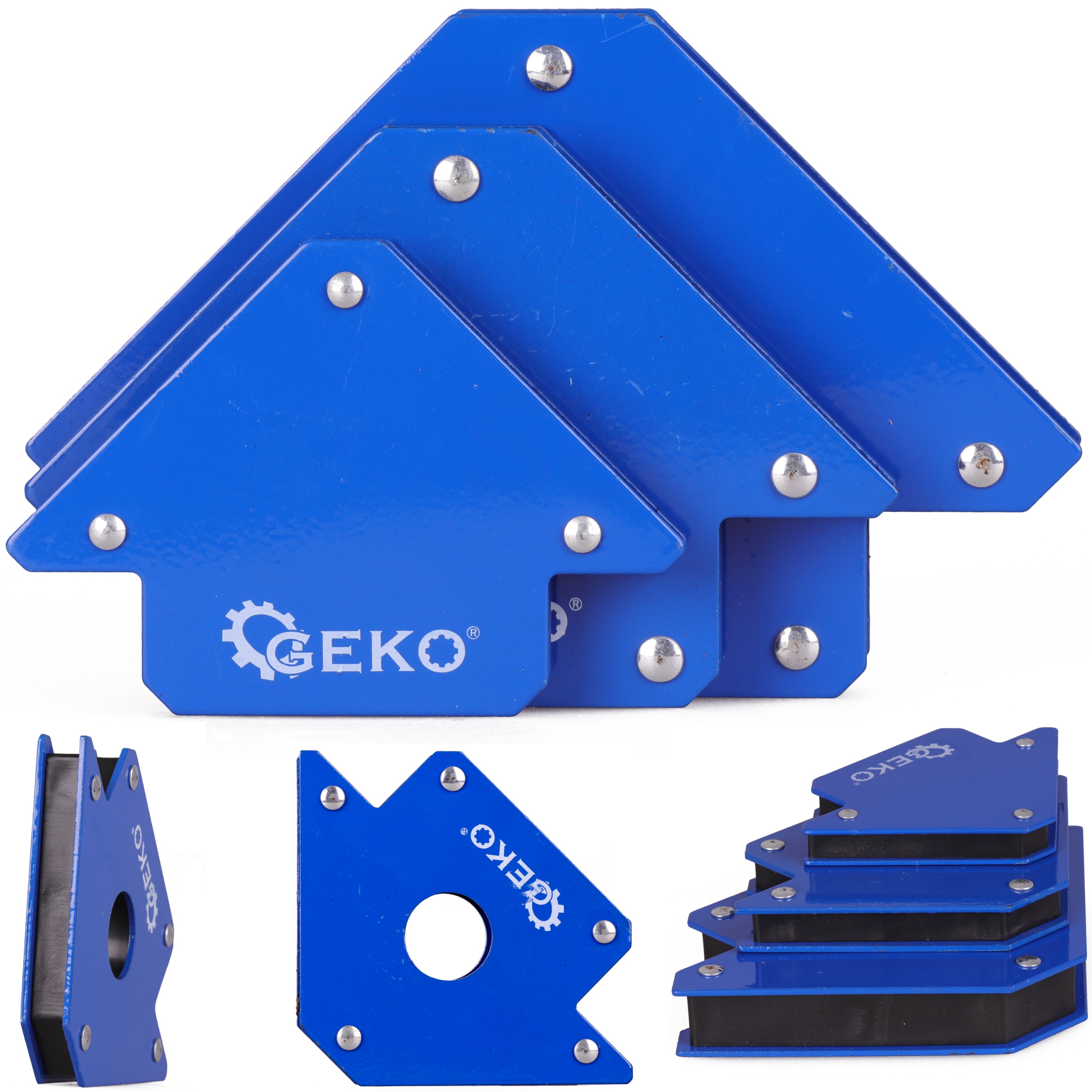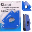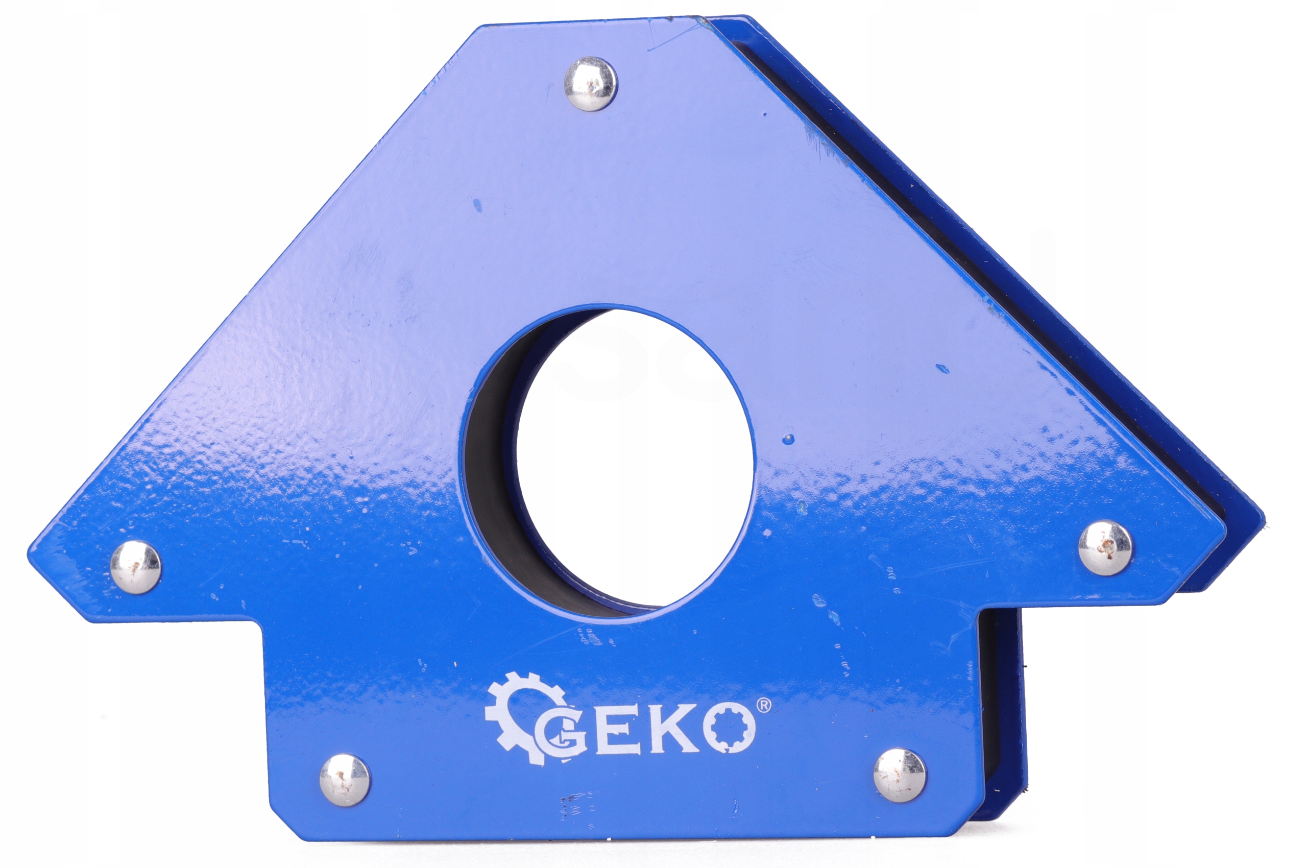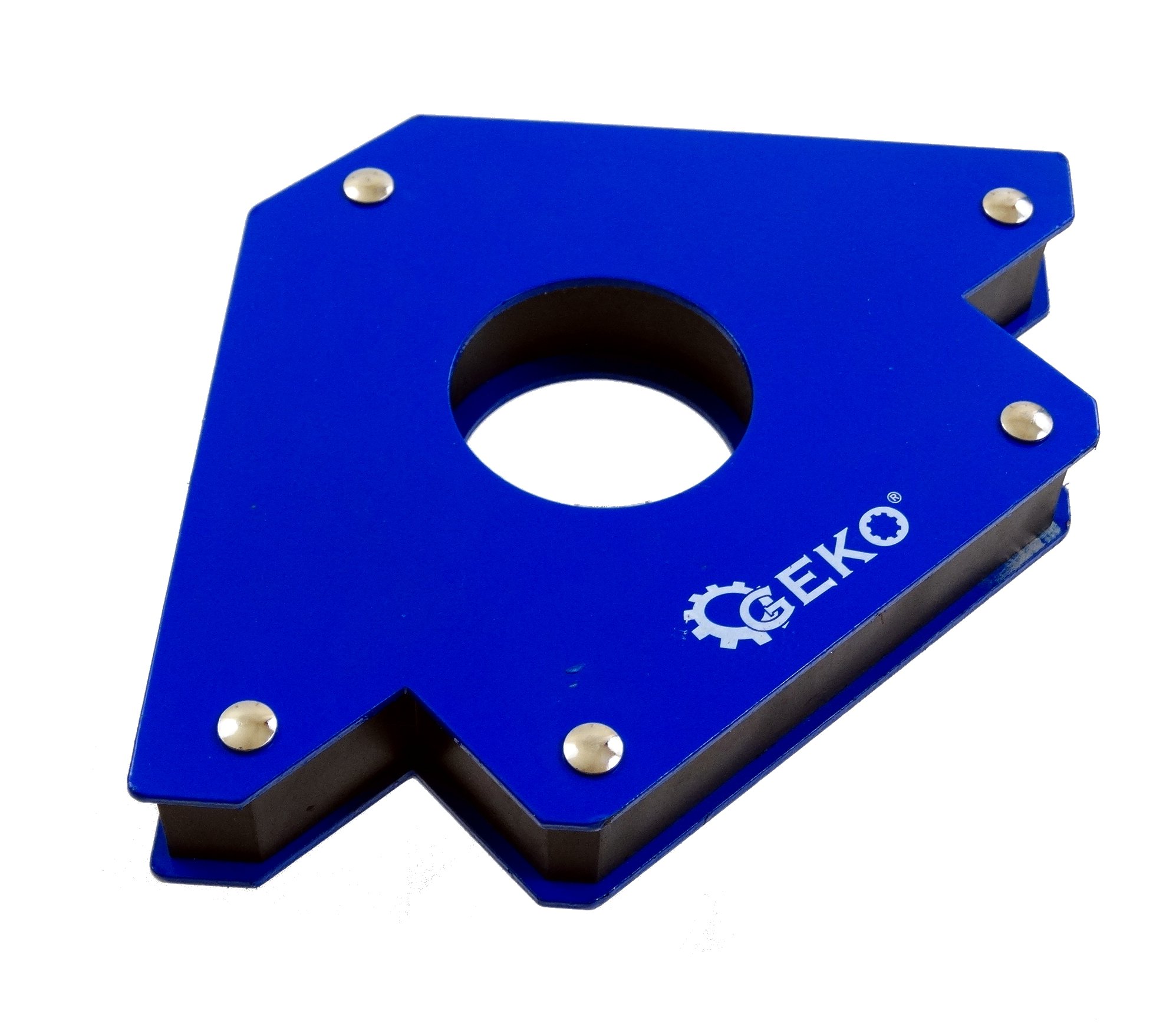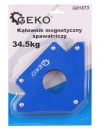 Profesjonalny magnetyczny kątownik spawalniczy o udźwigu 34,5 kg. Kątownik umożliwia ustawienie materiału pod kątem 45°, 90°, oraz 135° jest niezastąpiony podczas spawania, lutowania, montażu elementów metalowych, oraz trasowaniu. Produkt renomowanej firmy narzędziowej GEKO, wykonany jest z wysokiej jakości silnego magnesu dodatkowo zabezpieczonego stalową blachą. Duża siła przyciągania zapewnia stabilną, nieruchomą pozycję podczas wykonywania różnych prac związanych z łączeniem elementów.