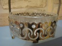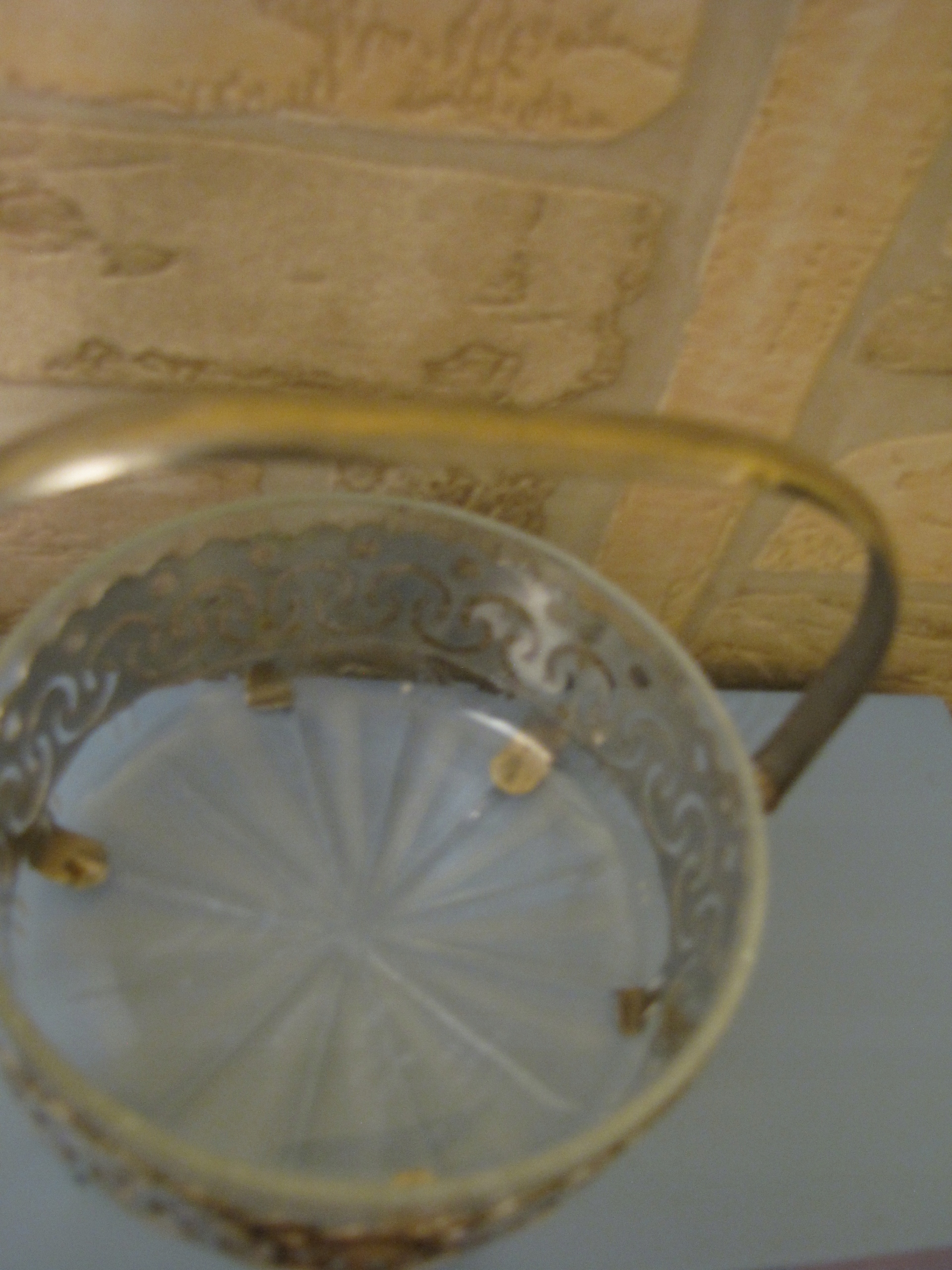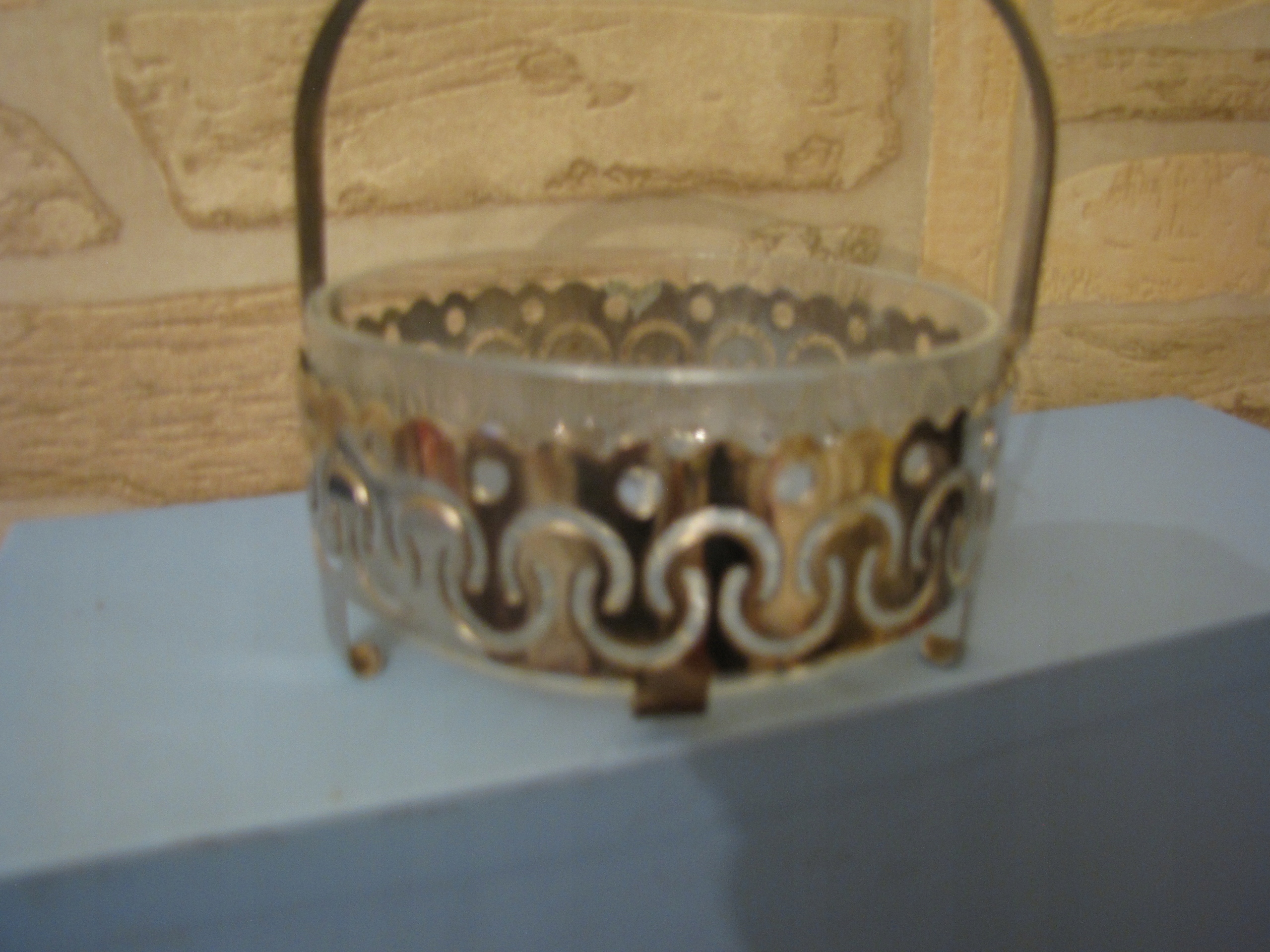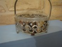 Oryginalna dekoracyjna stara cukiernica, szkło grawerowane na podstawie z uchwytami metalowymi .