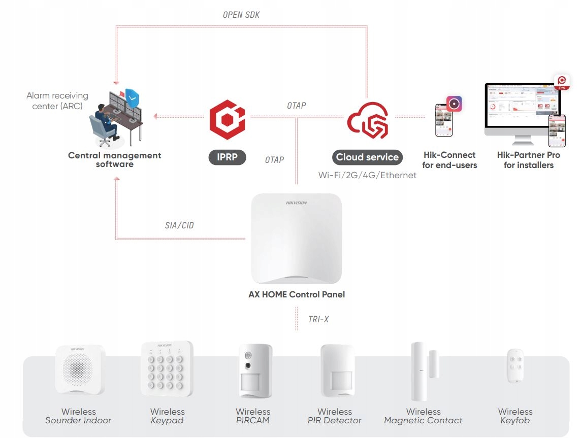 System alarmowy AX Home marki HiLook by Hikvision, wykorzystuje dedykowaną aplikację HikConnect zarówno do konfiguracji, zarządzania jak i obsługi systemu. Dzięki temu użytkownik posiada stały dostęp do wszystkich swoich systemów bezpieczeństwa (kamer, alarmów, wideodomofonów) w jednym oprogramowaniu.