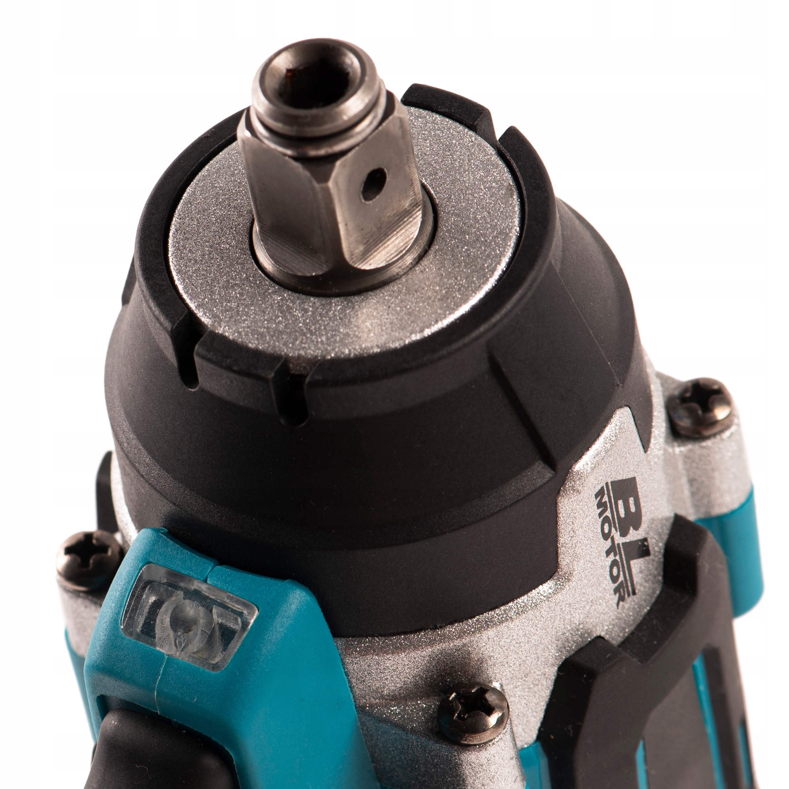 Dodatkowo użytkownik może dostosować jego pracę do specyfiki obrabianych materiałów i swoich potrzeb. Zamocowany w modelu uchwyt roboczy typu kowadełko 1/2" (13 mm) posiada stożek blokujący, który zapewnia skuteczne przenoszenie momentu, zabezpieczając tym samym nasadkę przed wypadnięciem.