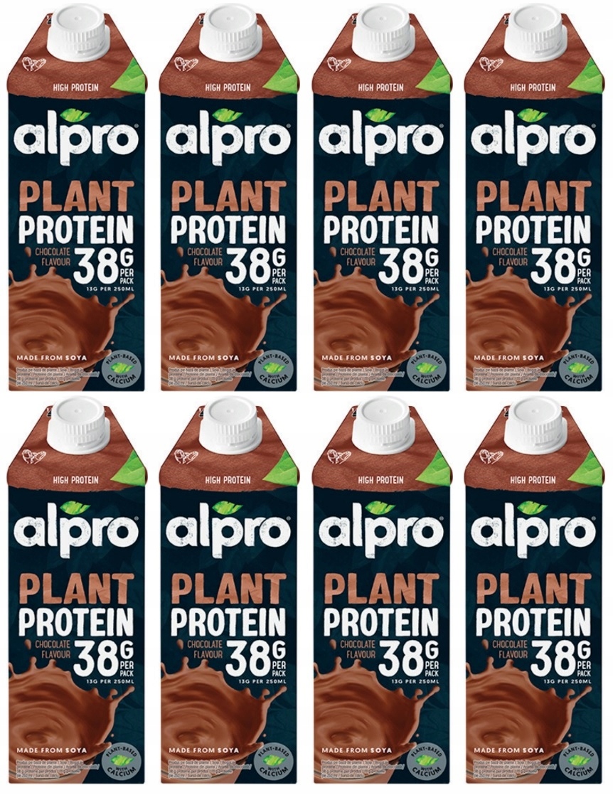 В комплект входит 8PCS Alpro Plant Protein соевый напиток с высоким содержанием белка и шоколадным вкусом Chocolate Flavour 750 ml.