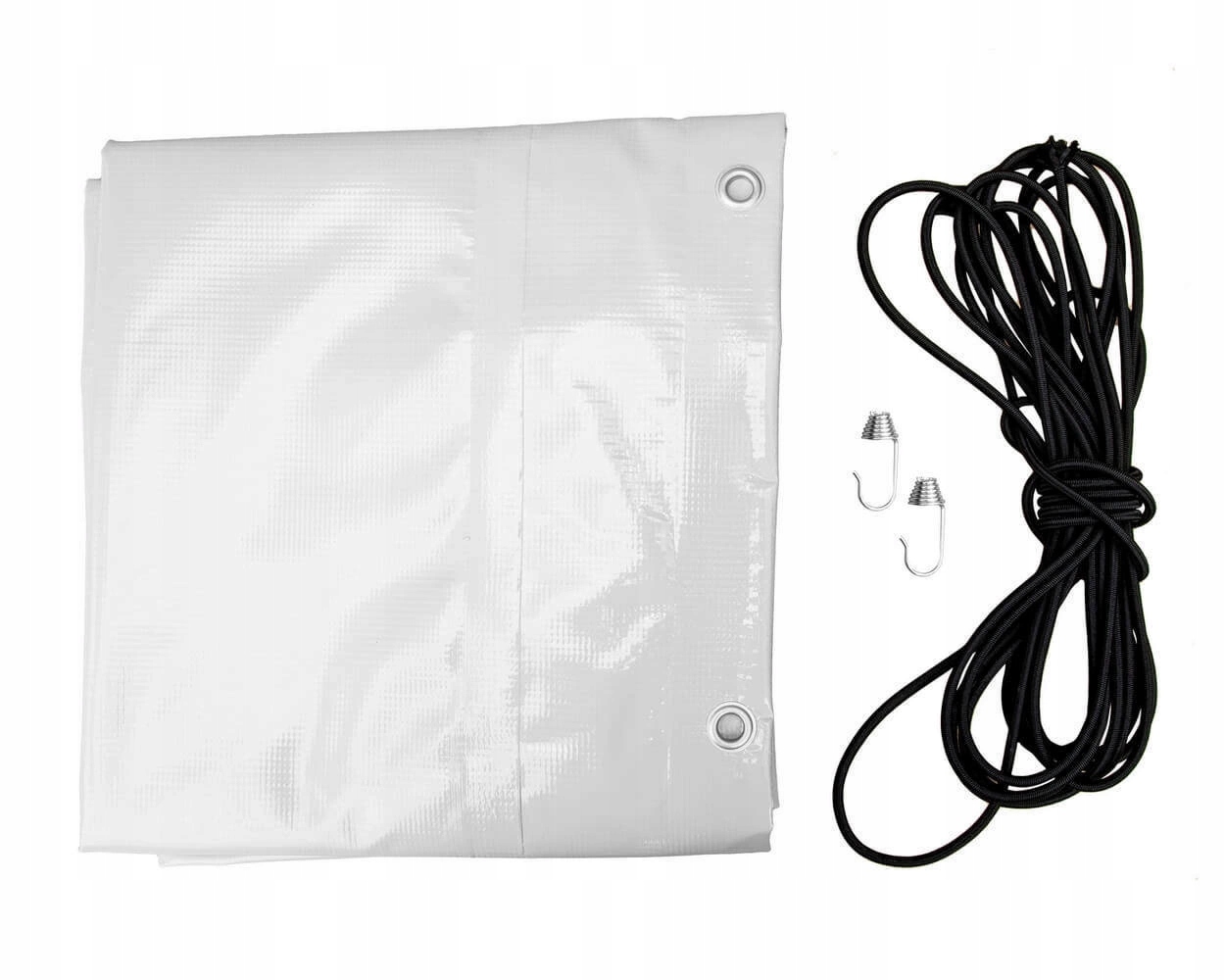 Dzięki elastycznej linie z zaczepami montaż pokrowca zajmuje tylko chwilę. Szary kolor plandeki jest uniwersalny i estetyczny, a dodatkowo ułatwia utrzymanie czystości podczas użytkowania.