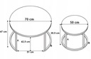 Wymiary dużego stolika to: 47 cm (wys.) x 70 cm (szer.) x 70 cm (gł.).