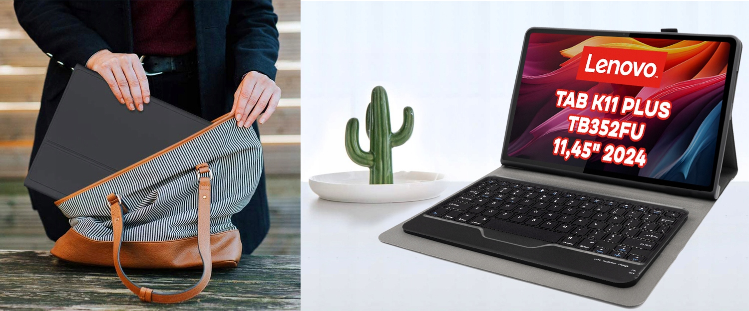 Nowe, dedykowane etui z bezprzewodową klawiaturą do tabletu Lenovo Tab K11 Plus TB352FU 11.45" 2024, wykonane z wysokiej jakości trwałych materiałów. Posiada wycięcia na wszystkie sloty, złącza, przyciski i kamery. Pokrowiec jest lekki a zarazem wytrzymały, wygląda estetycznie i doskonale chroni Twój tablet przed zniszczeniami mechanicznymi, wodą i kurzem. Posiada wygodne magnetyczne zapięcie, chroniące przed wypadaniem tabletu.