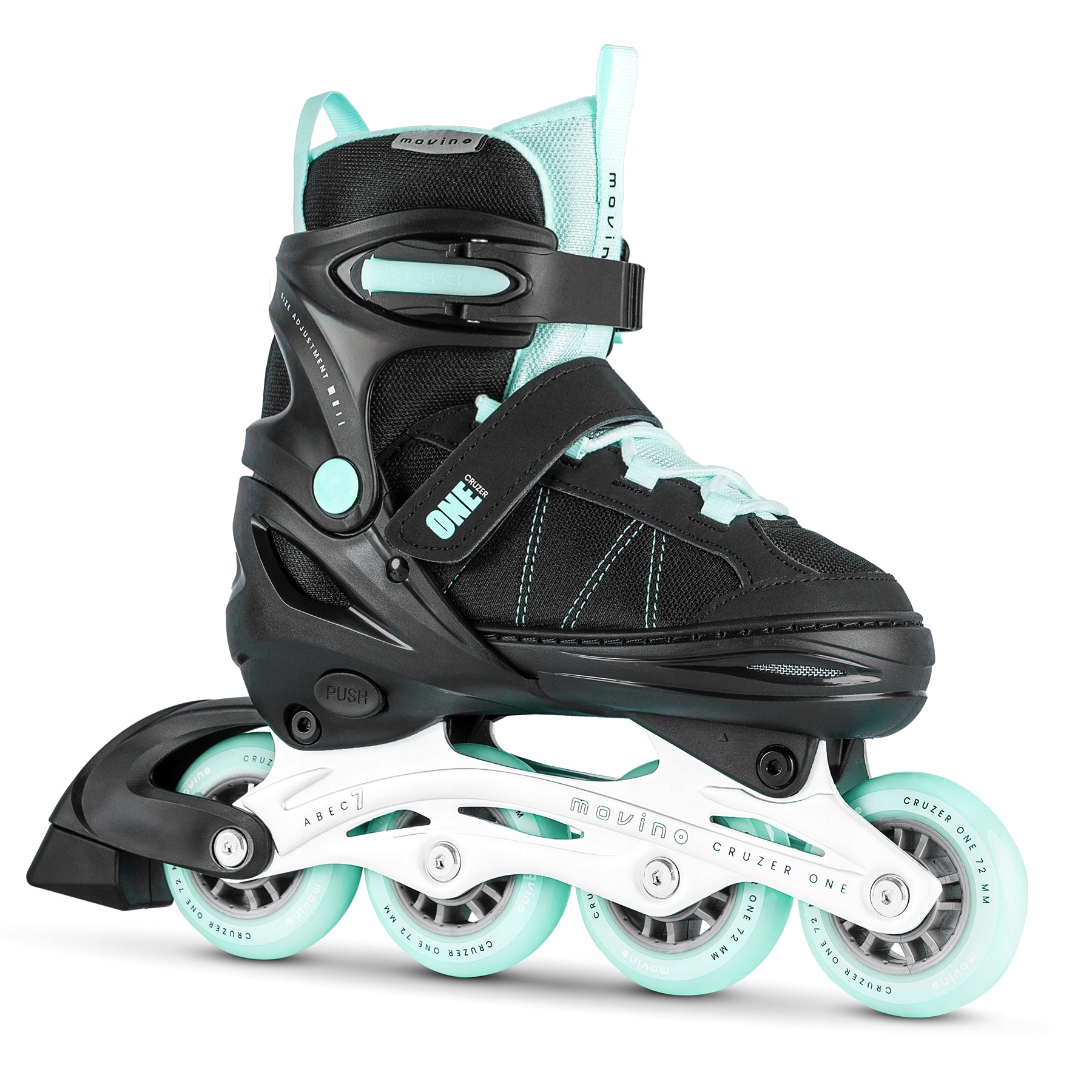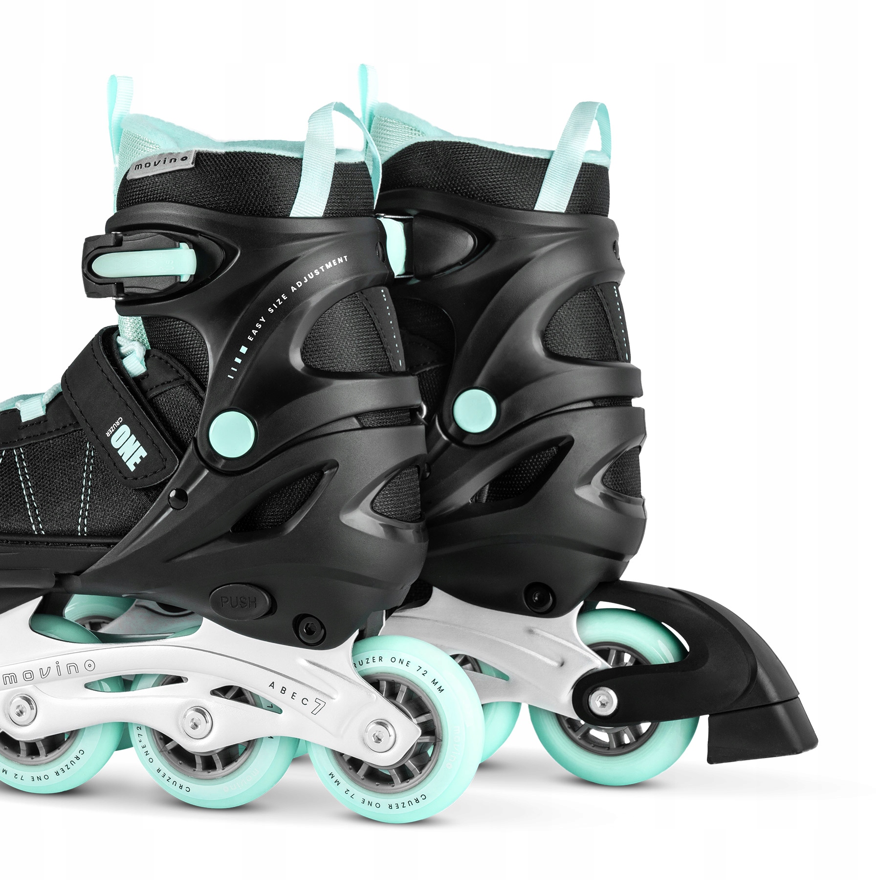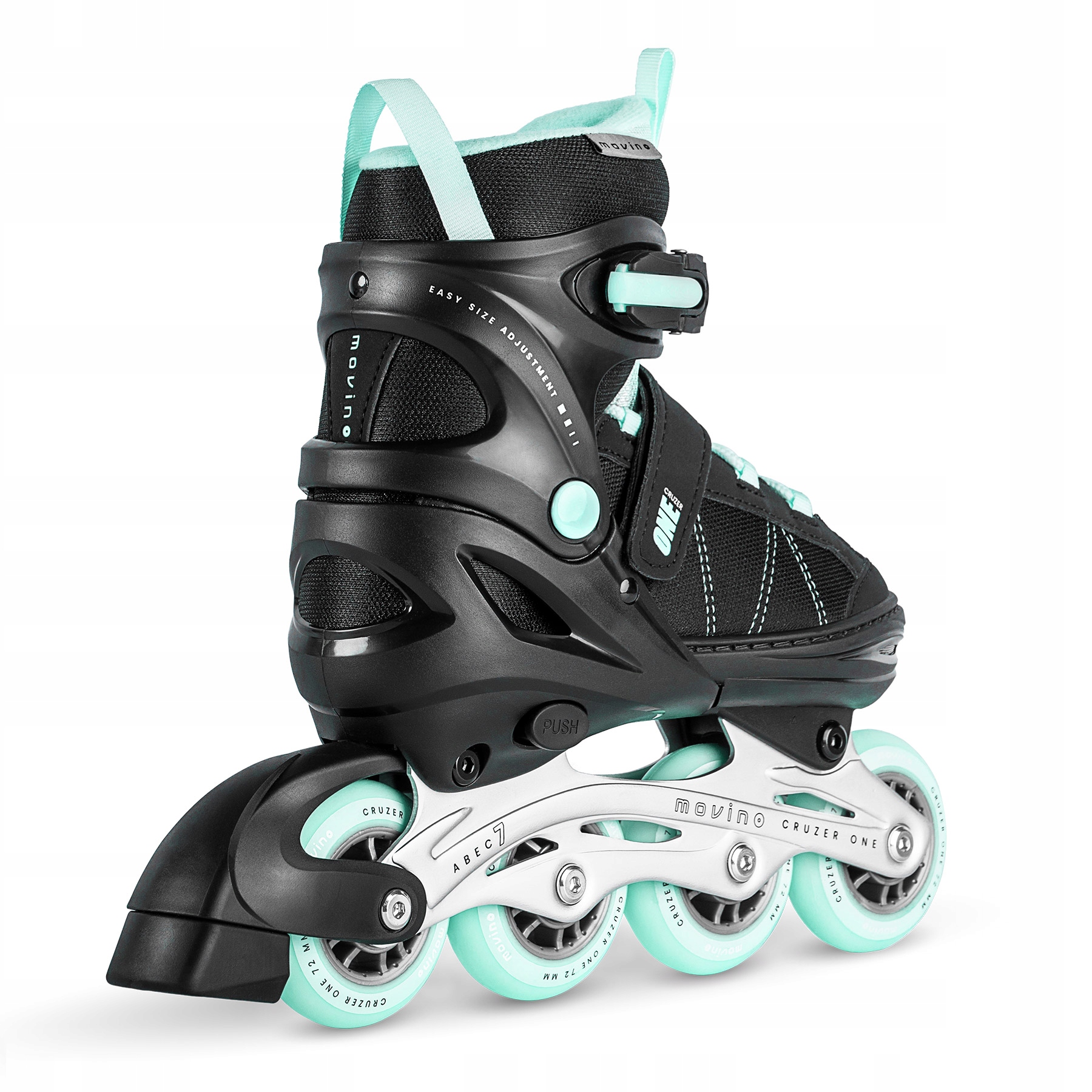 Rolki Movino Cruzer One posiadają szybki i niezawodny system regulacji rozmiaru za pomocą jednego przycisku. Czterostopniowy zakres między rozmiarem 38-41 pozwala dopasować but do stopy o długości między 24-26cm.