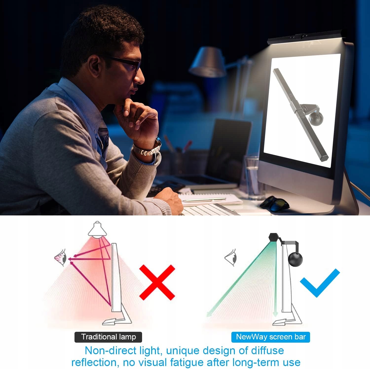 Listwa świetlna monitora NewWay do komputera stacjonarnego / laptopa Lampa polaryzacyjna Brak odblasków na ekranie dla ochrony oczu, regulowana jasność i temperatura barwowa