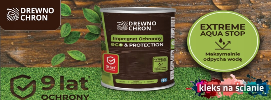 Impregnat Ochronny ECO&PROTECTION powłokotwórczy przeznaczony jest do ochronnego i dekoracyjnego malowania przedmiotów drewnianych na zewnątrz pomieszczeń (drzwi, okna, meble ogrodowe, boazerie zewnętrzne, altanki, domki letniskowe, płoty, konstrukcje stropów i dachów, itp.) oraz wewnątrz pomieszczeń nie przeznaczonych na stały pobyt ludzi np. strychy, poddasza. Impregnat wyróżnia się wysoką ochroną drewna, łatwą aplikacją, krótkim czasem schnięcia.