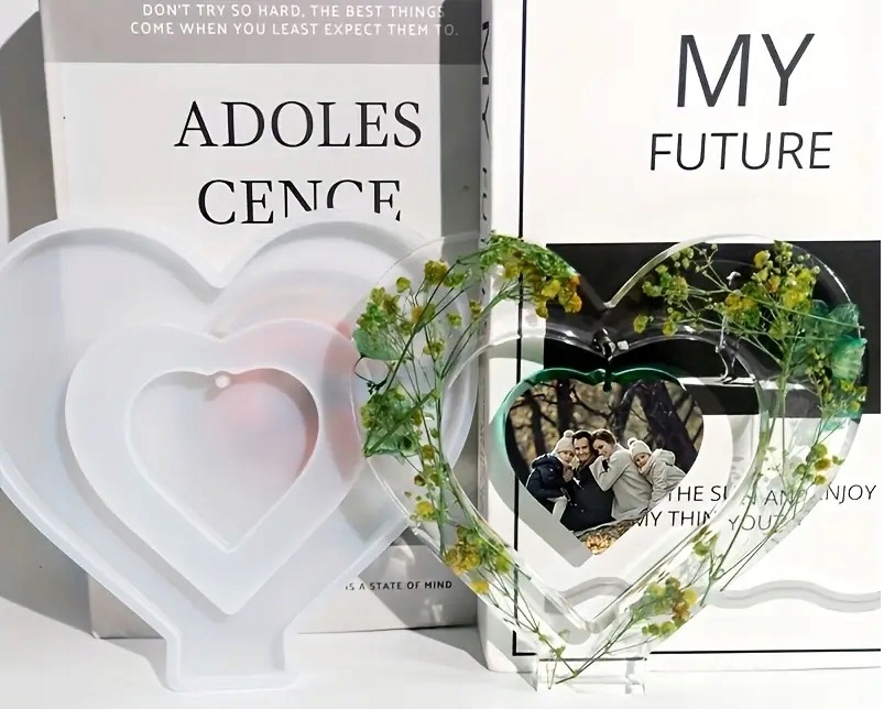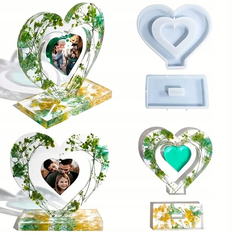 Zestaw formy silikonowych do żywicy + żywica epoksydowa 300g Idealny zestaw do zrobienia niepowtarzalnego serca z podstawą