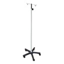 Stalowy stojak przejezdny z wieszakiem do kroplówek ze stali nierdzewnej. Podstawa (kształt gwiazdy) w kolorze czarnym, nielakierowana, z tworzywa. W wyposażeniu podstawowym znajduje się dwuramienny wieszak na płyny infuzyjne. Dodatkowe wyposażenie widoczne jest poniżej.
