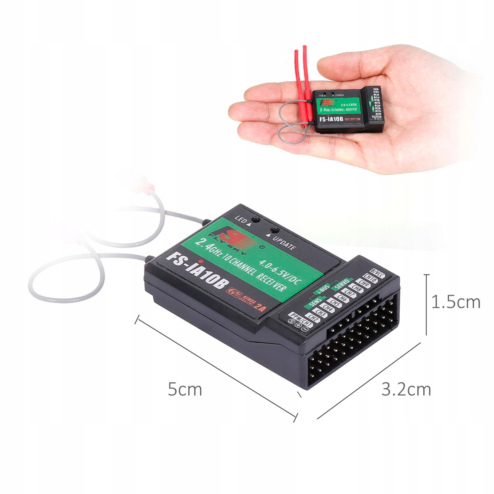 4. Odbiornik FS-IA10B jest kompatybilny z Flysky FS-I6 FS-I6S FS-I6X FS-I10 FS-GT2E FS-GT2F FS-GT2G FS-IT4S FS-GT5 FS-I8 FS-TM10. Odpowiednie modele: samolot / szybowiec / helikopter, łatwa instalacja i użycie.