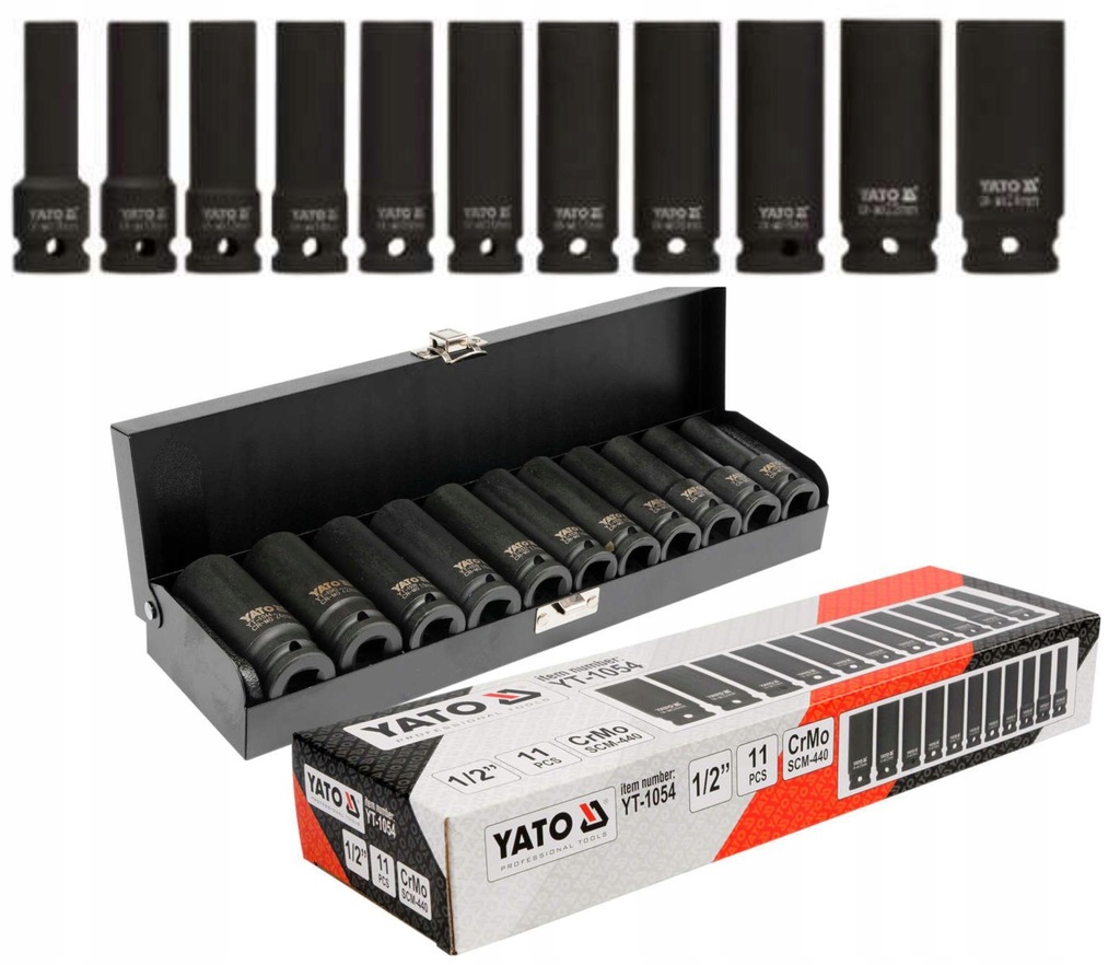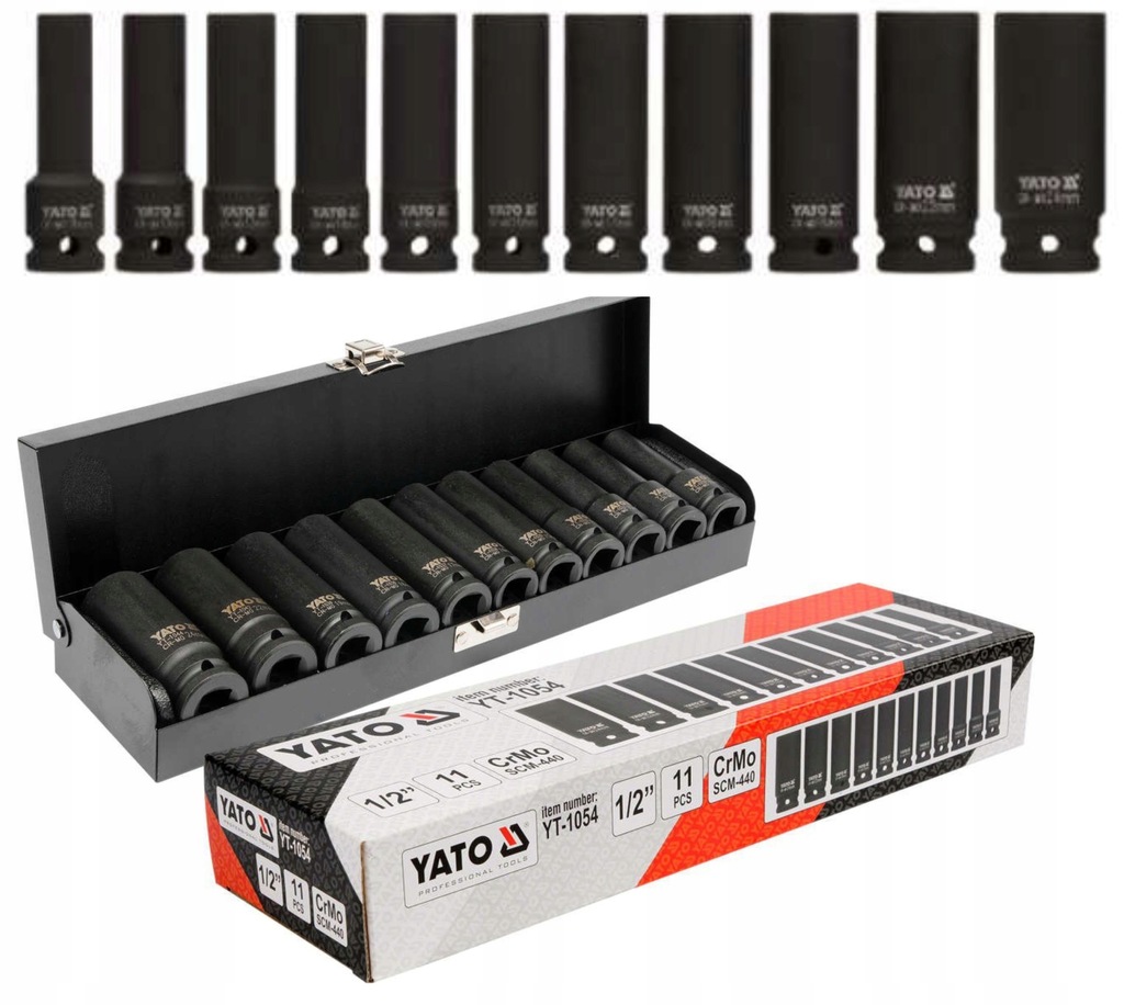 Nasadki udarowe YATO długie - komplet 11 kluczy nasadowych.
