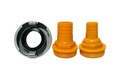 W standardowym wyposażeniu pompy jest króciec tłoczny oraz komplet redukcji. Umożliwiają podłączenie węża tłocznego za pomocą opaski lub węża strażackiego za pomocą szybkozłącza.