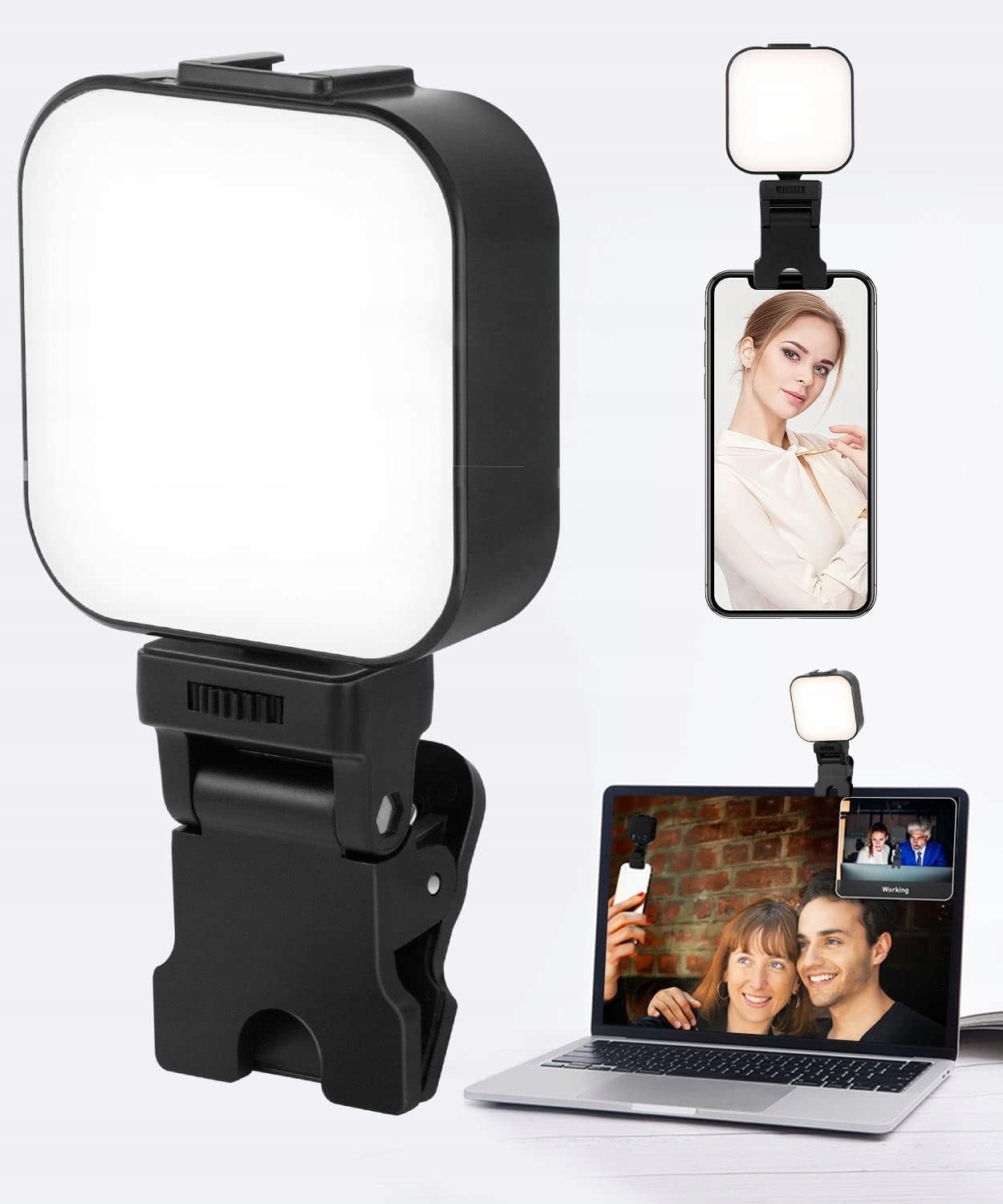 Lampa LED do wideo wyposażona w 64 diody LED oferuje pięć poziomów jasności (10%-100%) oraz pięć trybów temperatury barwowej (3200K-6500K). Doskonała do wideokonferencji, selfie, TikToka, vlogów i transmisji na żywo, zapewnia profesjonalne oświetlenie w każdej sytuacji.