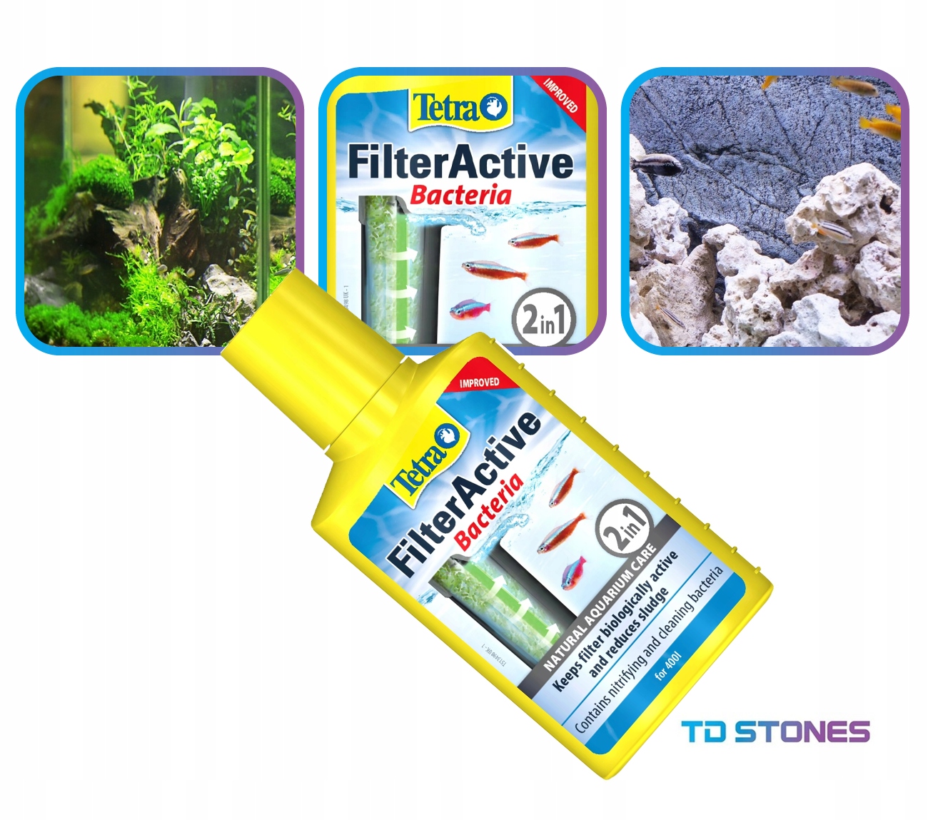 ➡️ Bakterie nitryfikacyjne redukują szkodliwe związki azotowe w akwarium takie jak azotany i amoniak. Preparat ten zwiększa aktywność biologiczną bakterii namnażających się zarówno w podłożu jak i filtrze.