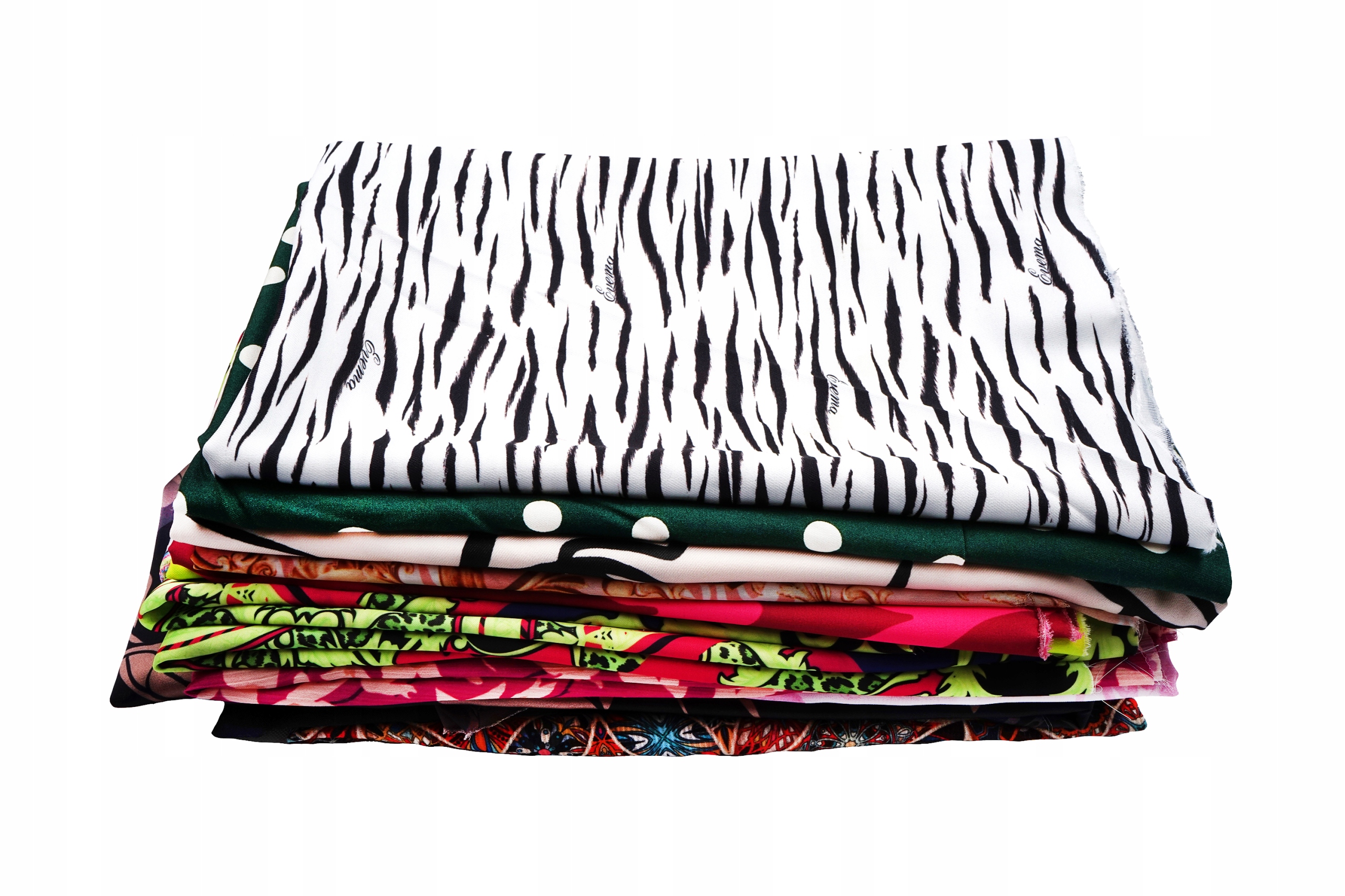 Są to głównie wzorzyste tkaniny ubraniowe - najwyższej jakości satyny, szyfony, muśliny, wiskozy, welury, dresówki i wiele innych.