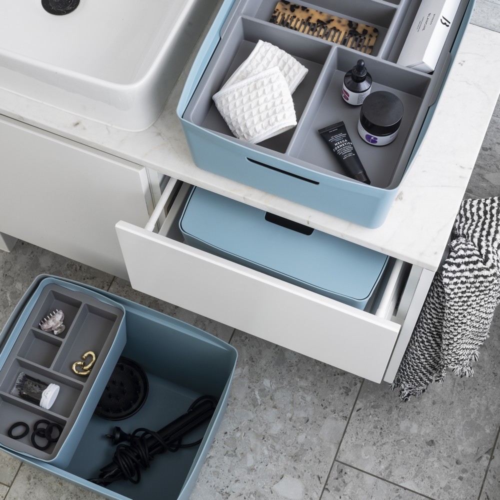 ✅ Uniwersalny grafitowy kolor doskonale komponuje się z pojemnikami FLEXISTORE zarówno w kolorze NEUTRAL jak i DENIM.