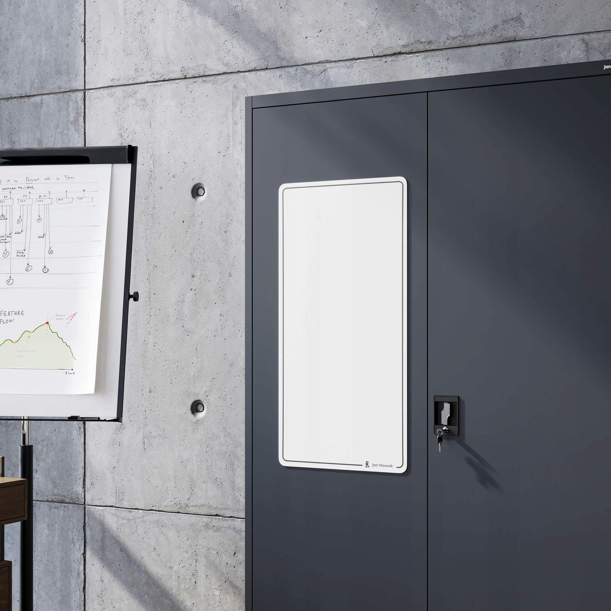 Ze względu na wysoką elastyczność, Magneto Flipchart jest niezwykle prosty w przechowywaniu i nie zajmuje dużo miejsca. Wystarczy zwinąć go bądź zapakować do tuby z zestawu. Magnetyczna tablica idealnie przylega do metalowej powierzchni i nie odpada. Można ją zaczepiać i przesuwać w dowolny sposób – pionowo, poziomo bądź pod kątem, czyli dokładnie tak, jak tego potrzebujemy i na ile pozwala nam dostępna powierzchnia. Flipchart magnetyczny świetnie sprawdza się jako tablica do robienia notatek, zapisków i rysunków.