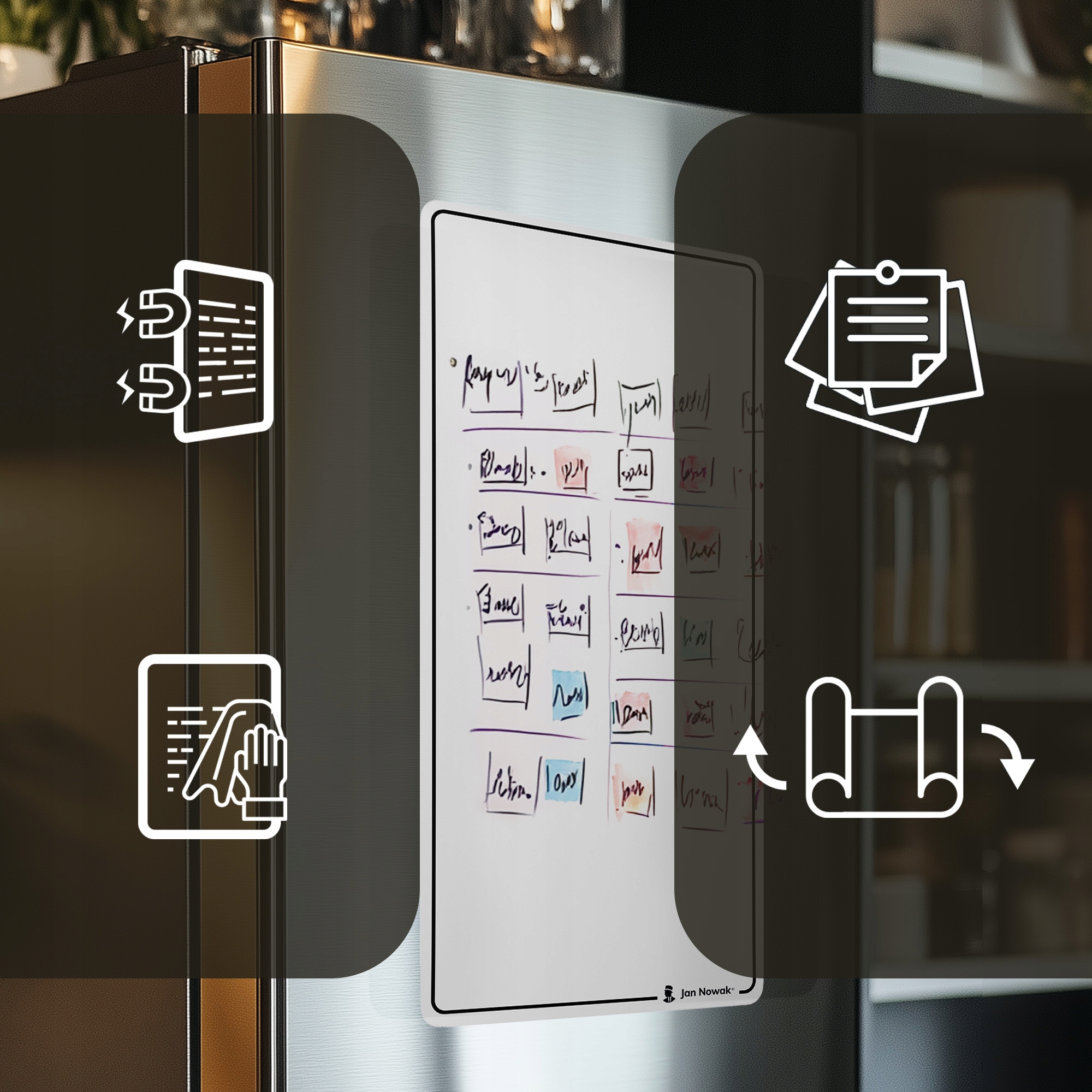 Specjalne warstwy zabezpieczają flipchart przed zalaniem i uszkodzeniem. Nie musisz obawiać się plam, o które nietrudno – zwłaszcza w kuchni. Wodoodporność chroni przed trwałym zanieczyszczeniem i daje Ci swobodę korzystania z flipcharta w każdej sytuacji.