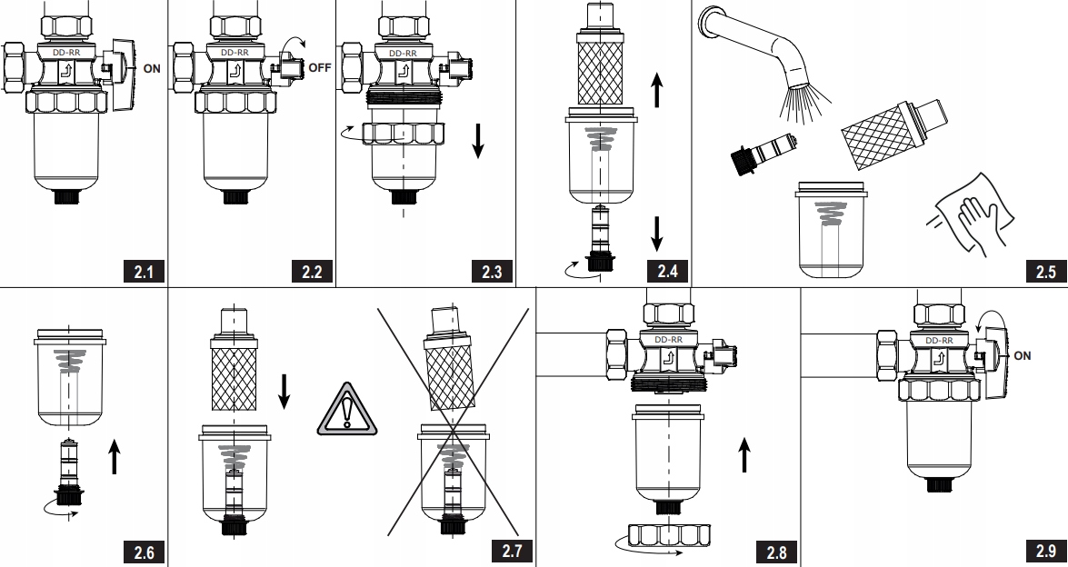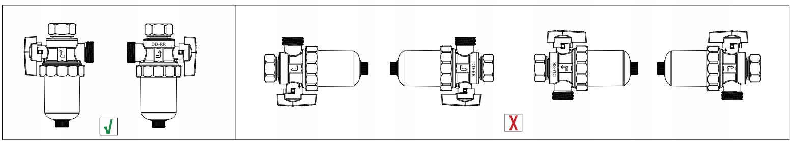 ✅ Separator zanieczyszczeń powinien być montowany na przewodzie powrotnym do źródła ciepła/chłodu.