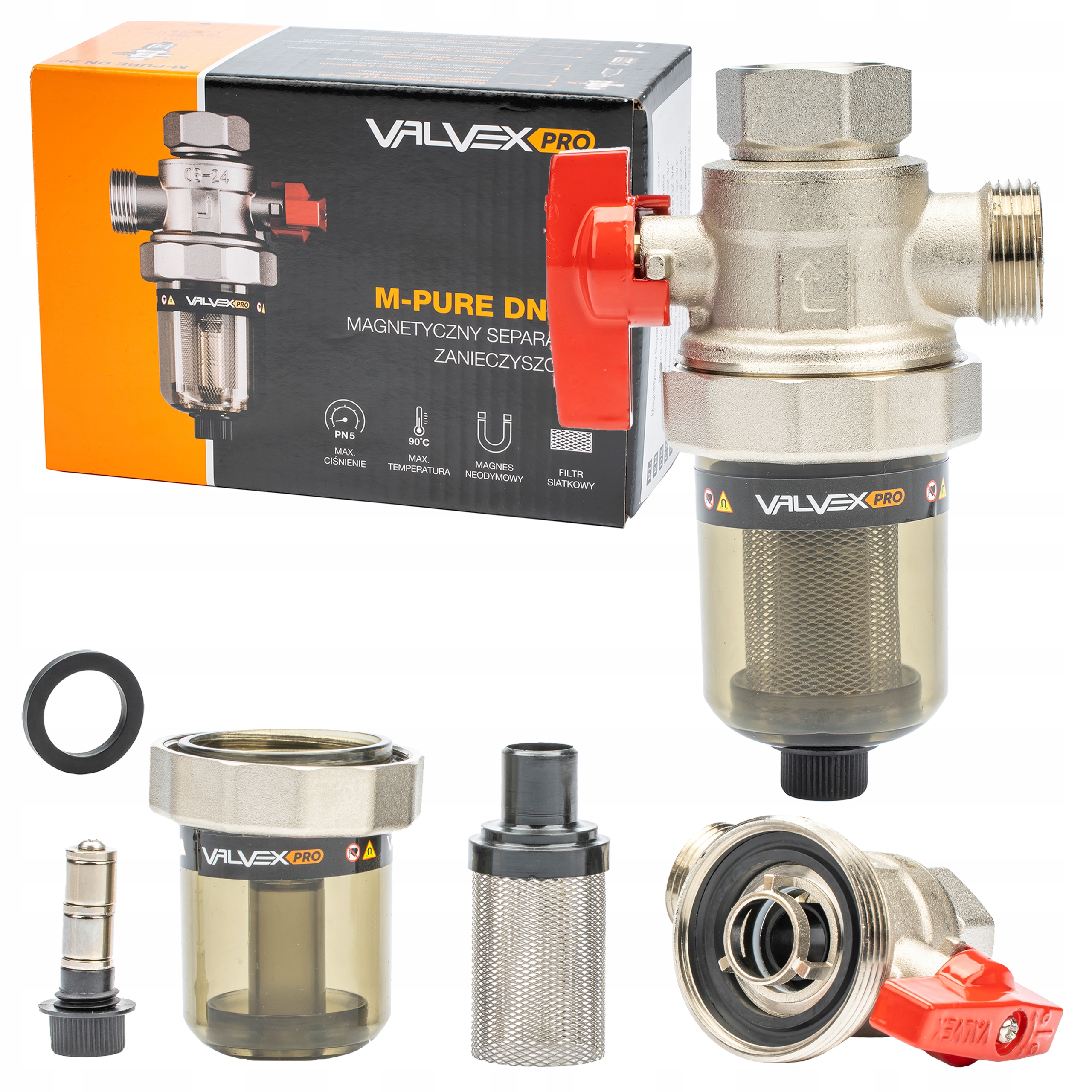 ZAWÓR KĄTOWY Z FILTREM SEPARATOREM MAGNETYCZNYM Ø 3/4" DO KOTŁA FILTR WODY KOTŁOWEJ SEPARATOR MAGNETYCZNY M-PURE DN 20 VALVEX 6096970