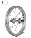 Wytrzymałe koło przednie XMX 12". Złożone na obręczy aluminiowej i piaście stalowej o średnicy osi 9,5 mm.