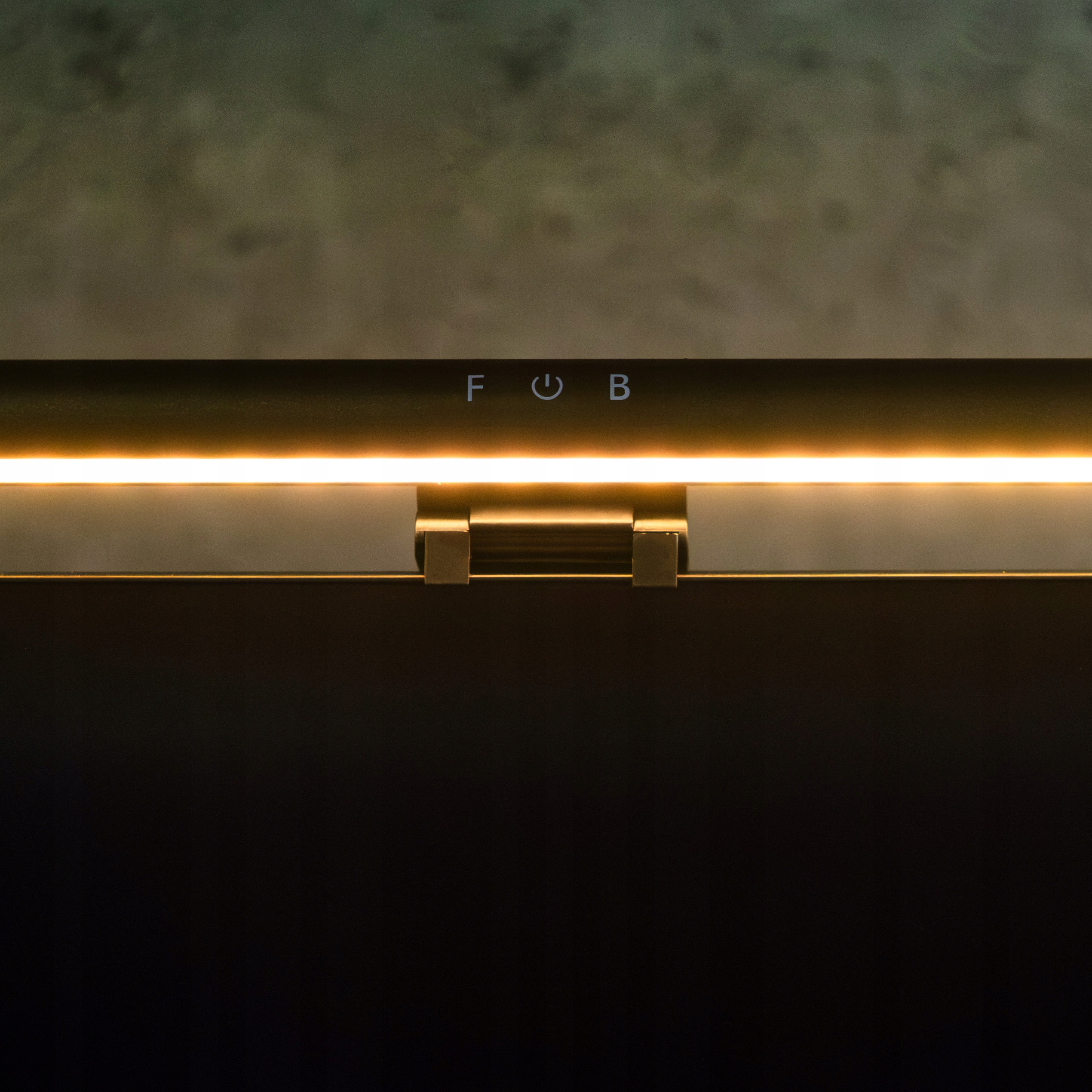 ➡️ Rzuć światło na blat biurka albo na przestrzeń za nim, regulując barwę i natężenie jednym palcem. Jednym dotknięciem. Pierwsze światło (F) pada przed ekranem i wspiera Cię w pracy. Drugie (B) rzuca aurę za panelem i tworzy intymną, relaksującą atmosferę. A co najważniejsze, każdym zarządzasz niezależnie.