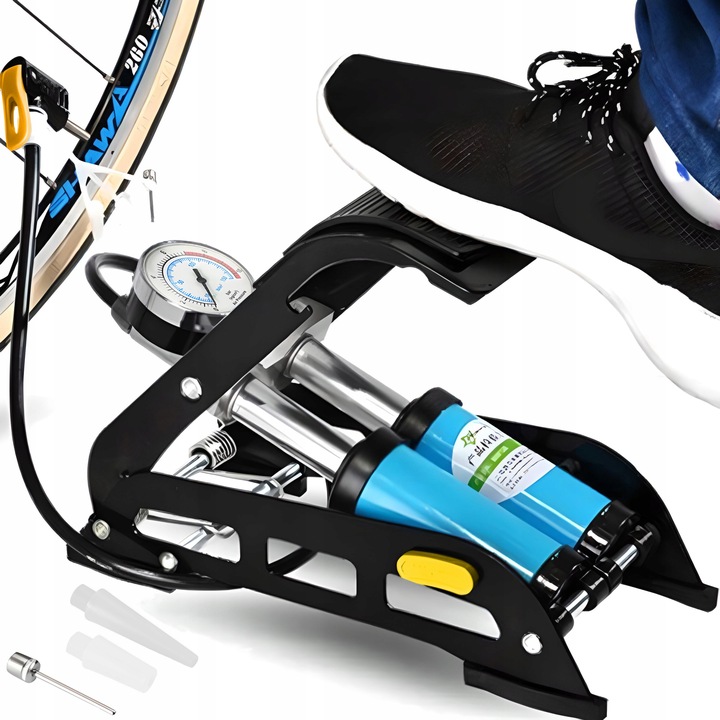 ✨ Uniwersalna dwutłokowa samochodowa to narzędzie usprawniające prace nie tylko w domowym zaciszu. Dzięki swojej konstrukcji może być używana także w serwisach oraz indywidualnej obsłudze w domu. Wydajny system dwutłokowy zapewnia o wiele szybsze napompowanie. Pompka świetnie nadaje się do pompowania kół rowerowych, motocyklowych, piłek, materacy a także kół samochodowych. Posiada stopkę z blokadą oraz manometr do 10 barów.