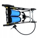 Pompka, dzięki zastosowaniu specjalnego systemu dwutłokowego zapewnia wydajne i szybsze napompowanie: