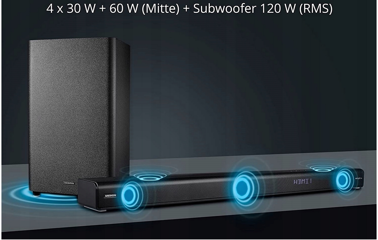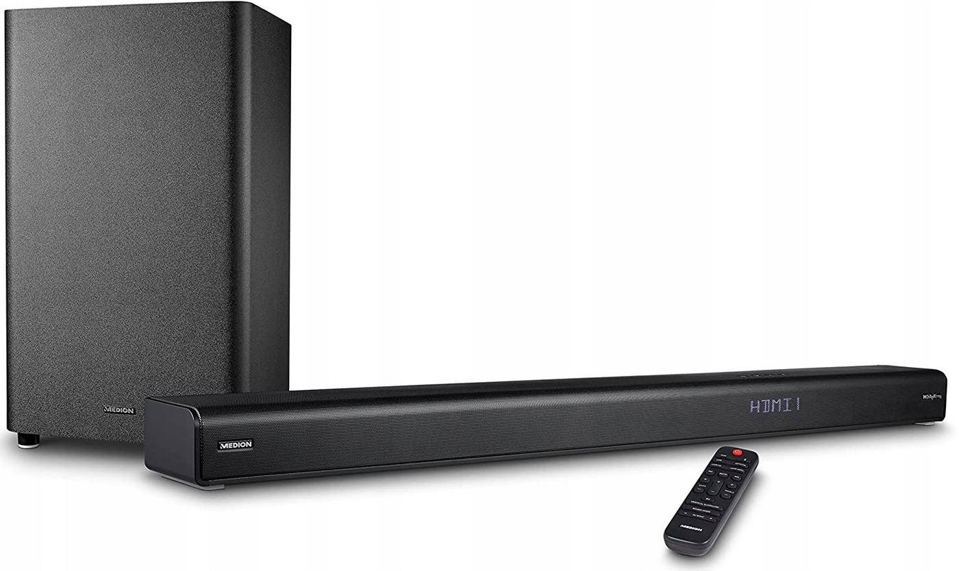 Film to nie tylko obraz, ale też dźwięk – oba te elementy stanowią nieodłączną całość. A zatem jeśli telewizor, to i wysokiej jakości soundbar MEDION. Soundbar to inaczej podłużny głośnik pod telewizor. Jest to urządzenie, które zyskuje coraz większą popularność w polskich domach, wybierane w szczególności przez osoby, które cenią wysoką jakość dźwięku. Soundbar jest stosunkowo nieduży i dopasowany kształtem do konstrukcji telewizora, a zatem dobrze komponuje się z domową przestrzenią. Dobrze sprawdzi się w szczególności w małych pomieszczeniach. Dodatkowym atutem zestawu jest bezprzewodowy sobwoofer, który wymaga tylko zasilania - bez konieczności rozciągania kabla audio!