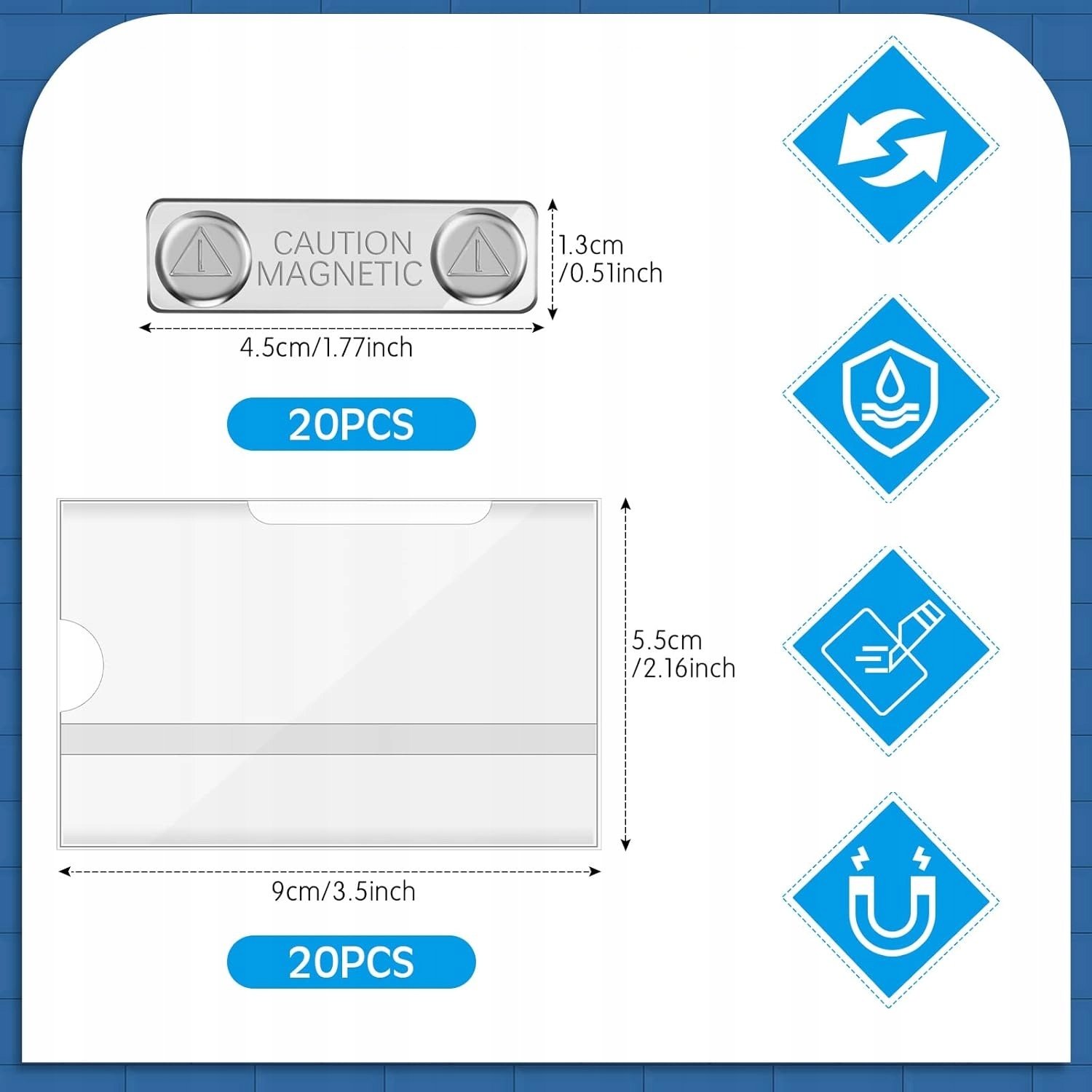 Łatwa instalacja: wystarczy zdjąć tylną stronę i przykleić magnes do tulejek kablowych, a następnie łatwo połączyć ze sobą plastikowe etui na magnesy i magnesy. Przemyślane prezenty: Możesz wysłać te tabliczki z imieniem z magnesami jako praktyczne prezenty dla przyjaciół, członków rodziny, kolegów, współlokatorów, krewnych i sąsiadów na przyjęciach urodzinowych i innych pięknych uroczystościach, co może ich uszczęśliwić. Specyfikacje: Materiał: PCW i magnes. Kolor: przezroczysty.