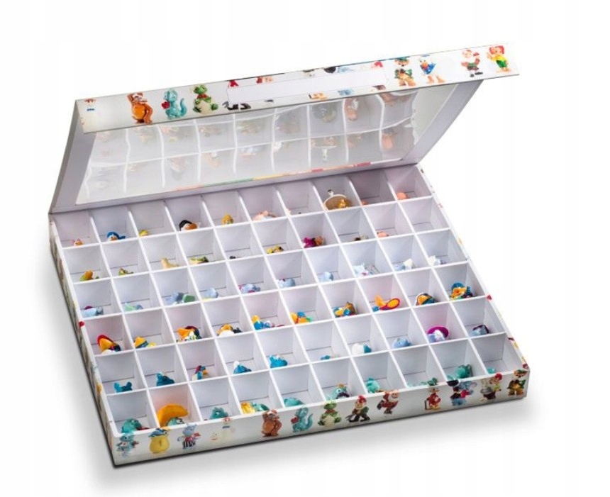 Zawiera 60 miejsc na pojedyncze figurki, każde o wymiarach 50 x 36 x 33 mm.