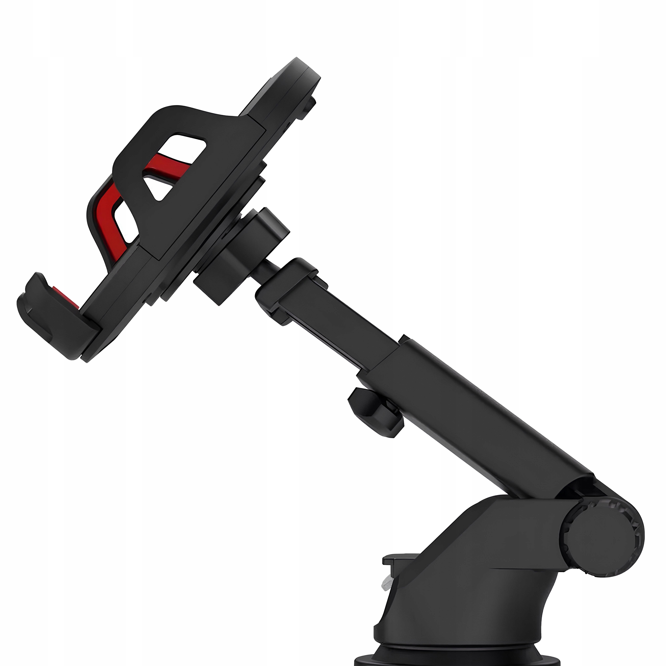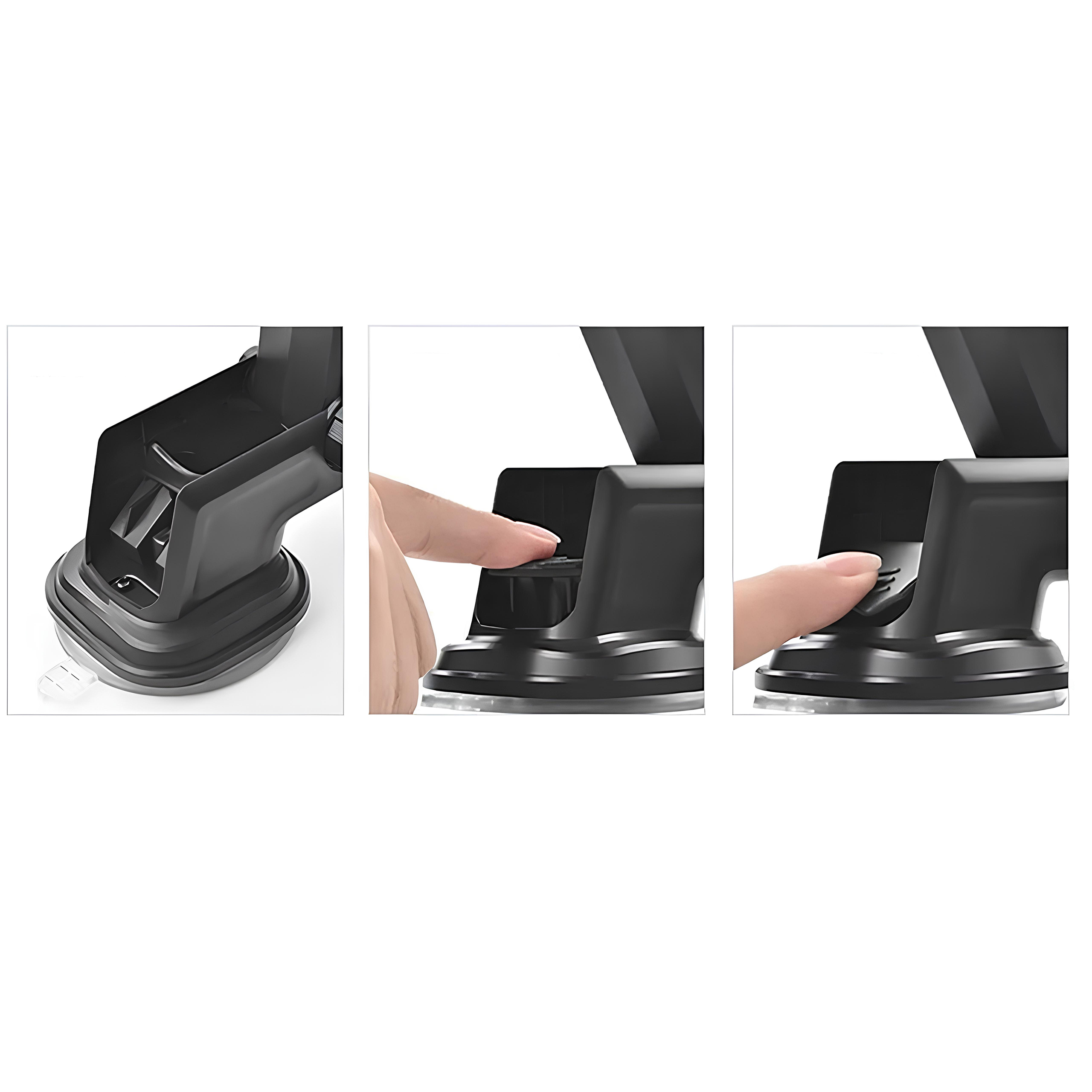 Montaż uchwytu jest szybki i bezproblemowy – wystarczy docisnąć przyssawkę do szyby lub kokpitu, aby stabilnie przylegała do powierzchni. Dodatkowy mechanizm dociskowy zwiększa siłę mocowania, dzięki czemu uchwyt nie odpada nawet po dłuższym czasie użytkowania. Po demontażu wystarczy przemyć przyssawkę wodą, aby przywrócić jej właściwości.