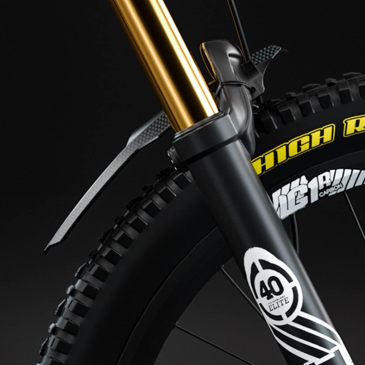 Trwały прочный материал: велосипедные крылья изготовлены из высококачественного материала PP, который он обладает высокой прочностью и ударопрочностью, не трескается легко и не ржавеет, гибкий, легкий и мягкий, их можно сгибать и ударять по желанию, они не деформируются легко и долговечны. Узор из волокна углерода на поверхности, красивый.