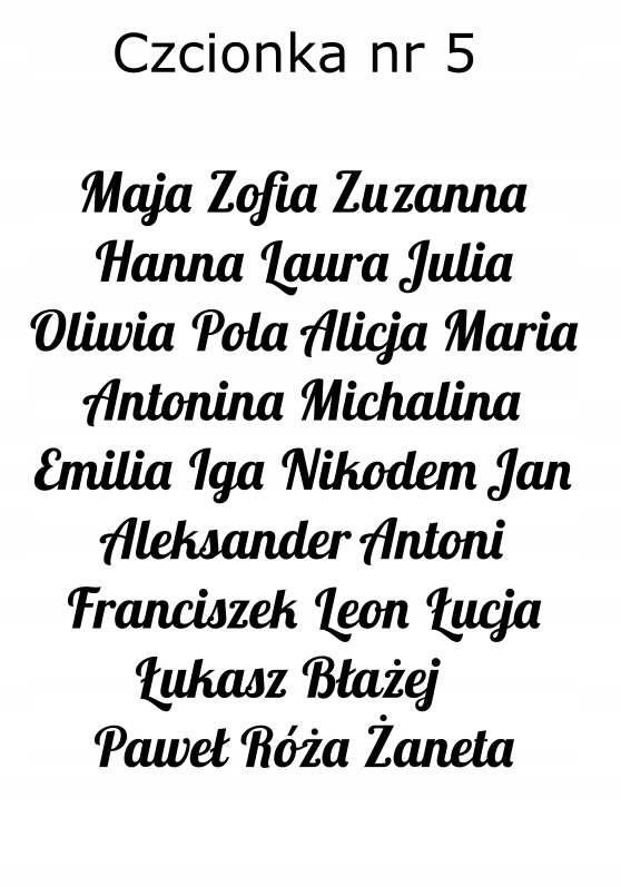 Jest również możliwość wybrania zwierzątka, listka, nutki albo innego prostego symbolu zamiast napisu - zwierzątka i symbole dostępne od ręki są widoczne na ostatnim zdjęciu. Możesz wybrać kolor dla personalizacji czarny, biały lub jeden z sześciu innych dostępnych na tej aukcji.